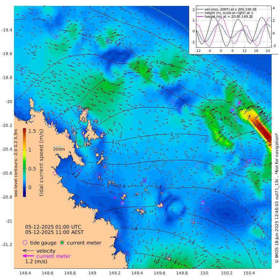 23cm/s -37T +10cm/s rms + 2cm/s 5T. Brampton I 18m 12cm/s 15T +9cm/s rms + 6cm/s 66T. Wigton I 38m 26cm/s 24T +7cm/s rms + 8cm/s 141T. Tern I 47m 36cm/s 43T +7cm/s rms + 12cm/s 54T. N Bugatti Rf 64m 18cm/s 52T +3cm/s rms + 13cm/s 178T. W Bugatti Rf 70m 17cm/s 53T +3cm/s rms + 3cm/s -130T. Creal Rf 69m 146cm Holbourne I 275cm Tern I 156cm Bugatti Rf 202cm Creal Rf 124cm White Tip I 134cm Wallaby Reef 120cm Kennedy Reef 108cm Unnamed Reef No. 2 186cm Tideway Reef 174cm Hayman Island 229cm Square Reef 179cm Double Bay 209cm Molle Island 209cm Cid Harbour 179cm Hook Island 195cm Border Island 204cm Haslewood Island 207cm Shute Harbour 243cm Thomas Island 255cm Credlin Reef 274cm East Repulse Island 262cm Blacksmith Island 276cm Laguna Quays 274cm Carlisle Island (Off) 299cm St. Bees Island 267cm Scawfell Island 283cm Penrith Island 311cm Mackay Outer Harbour 327cm Hay Point 317cm Prudhoe Island