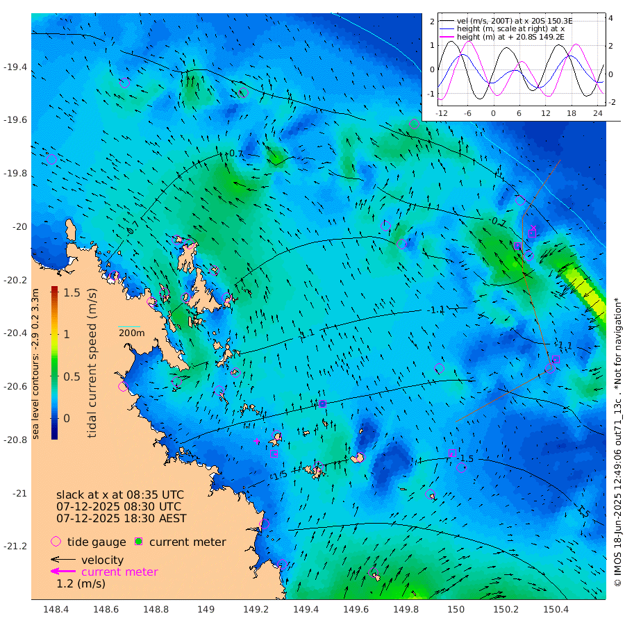 13cm/s 114T +10cm/s rms + 2cm/s 5T. Brampton I 18m 5cm/s -25T +9cm/s rms + 6cm/s 66T. Wigton I 38m 16cm/s -158T +7cm/s rms + 8cm/s 141T. Tern I 47m 7cm/s -83T +7cm/s rms + 12cm/s 54T. N Bugatti Rf 64m 9cm/s -13T +3cm/s rms + 13cm/s 178T. W Bugatti Rf 70m 10cm/s -116T +3cm/s rms + 3cm/s -130T. Creal Rf 69m -66cm Holbourne I -171cm Tern I -79cm Bugatti Rf -115cm Creal Rf -57cm White Tip I -51cm Wallaby Reef -47cm Kennedy Reef -47cm Unnamed Reef No. 2 -87cm Tideway Reef -88cm Hayman Island -111cm Square Reef -98cm Double Bay -96cm Molle Island -101cm Cid Harbour -90cm Hook Island -88cm Border Island -102cm Haslewood Island -105cm Shute Harbour -135cm Thomas Island -143cm Credlin Reef -154cm East Repulse Island -139cm Blacksmith Island -154cm Laguna Quays -157cm Carlisle Island (Off) -174cm St. Bees Island -156cm Scawfell Island -173cm Penrith Island -192cm Mackay Outer Harbour -208cm Hay Point -207cm Prudhoe Island
