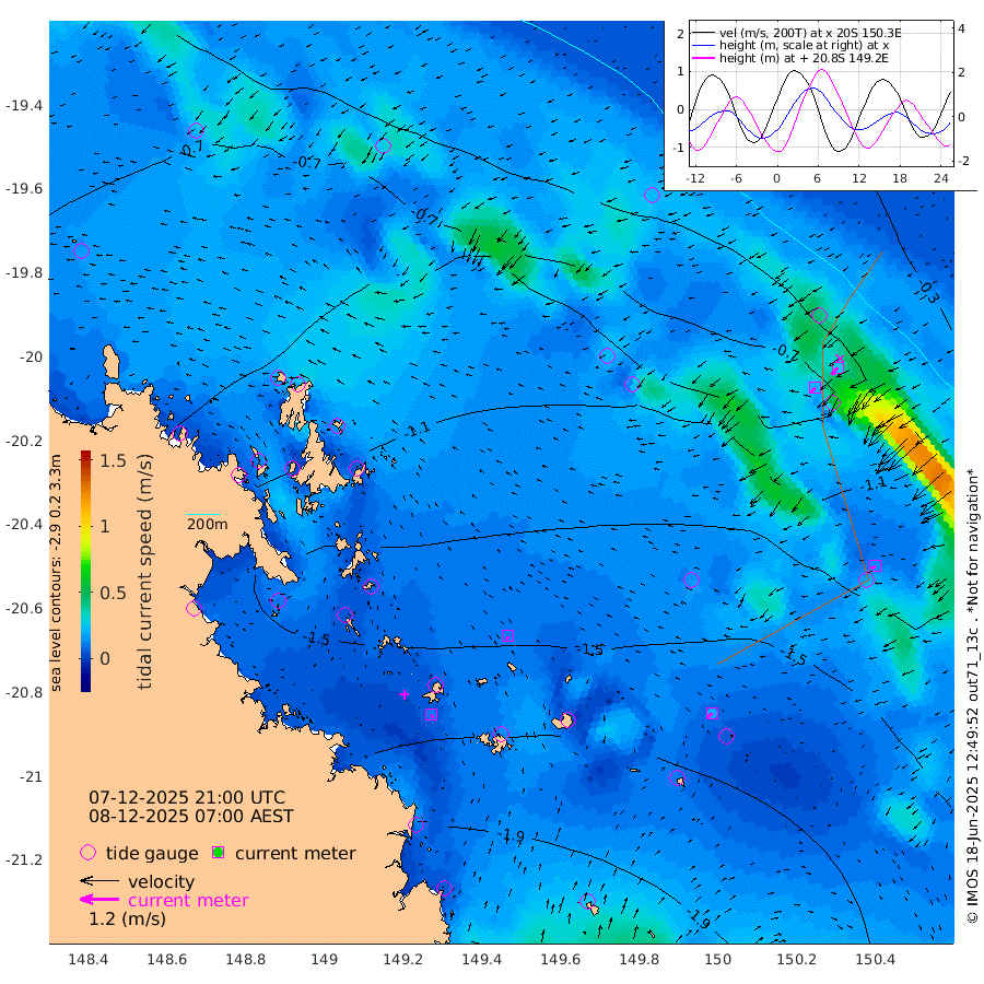 11cm/s 169T +10cm/s rms + 2cm/s 5T. Brampton I 18m 11cm/s -158T +9cm/s rms + 6cm/s 66T. Wigton I 38m 21cm/s -142T +7cm/s rms + 8cm/s 141T. Tern I 47m 28cm/s -143T +7cm/s rms + 12cm/s 54T. N Bugatti Rf 64m 22cm/s -135T +3cm/s rms + 13cm/s 178T. W Bugatti Rf 70m 15cm/s -123T +3cm/s rms + 3cm/s -130T. Creal Rf 69m -83cm Holbourne I -173cm Tern I -83cm Bugatti Rf -118cm Creal Rf -57cm White Tip I -70cm Wallaby Reef -62cm Kennedy Reef -47cm Unnamed Reef No. 2 -109cm Tideway Reef -98cm Hayman Island -134cm Square Reef -110cm Double Bay -124cm Molle Island -123cm Cid Harbour -107cm Hook Island -117cm Border Island -127cm Haslewood Island -126cm Shute Harbour -151cm Thomas Island -156cm Credlin Reef -175cm East Repulse Island -163cm Blacksmith Island -179cm Laguna Quays -179cm Carlisle Island (Off) -192cm St. Bees Island -166cm Scawfell Island -181cm Penrith Island -202cm Mackay Outer Harbour -214cm Hay Point -206cm Prudhoe Island