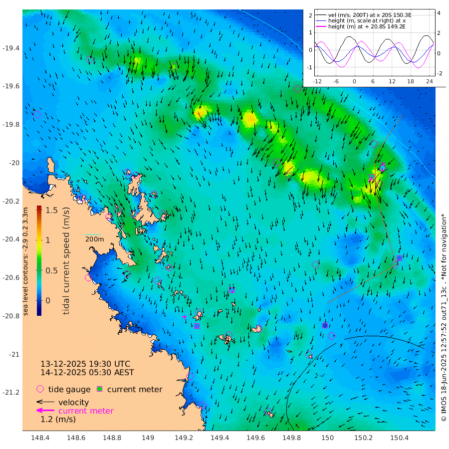 14cm/s -150T +10cm/s rms + 2cm/s 5T. Brampton I 18m 19cm/s 166T +9cm/s rms + 6cm/s 66T. Wigton I 38m 3cm/s -101T +7cm/s rms + 8cm/s 141T. Tern I 47m 28cm/s -178T +7cm/s rms + 12cm/s 54T. N Bugatti Rf 64m 42cm/s -151T +3cm/s rms + 13cm/s 178T. W Bugatti Rf 70m 11cm/s -180T +3cm/s rms + 3cm/s -130T. Creal Rf 69m 61cm Holbourne I 87cm Tern I 54cm Bugatti Rf 64cm Creal Rf 49cm White Tip I 48cm Wallaby Reef 62cm Kennedy Reef 54cm Unnamed Reef No. 2 56cm Tideway Reef 65cm Hayman Island 62cm Square Reef 70cm Double Bay 57cm Molle Island 54cm Cid Harbour 65cm Hook Island 50cm Border Island 47cm Haslewood Island 61cm Shute Harbour 67cm Thomas Island 74cm Credlin Reef 71cm East Repulse Island 60cm Blacksmith Island 66cm Laguna Quays 72cm Carlisle Island (Off) 79cm St. Bees Island 61cm Scawfell Island 81cm Penrith Island 85cm Mackay Outer Harbour 93cm Hay Point 102cm Prudhoe Island