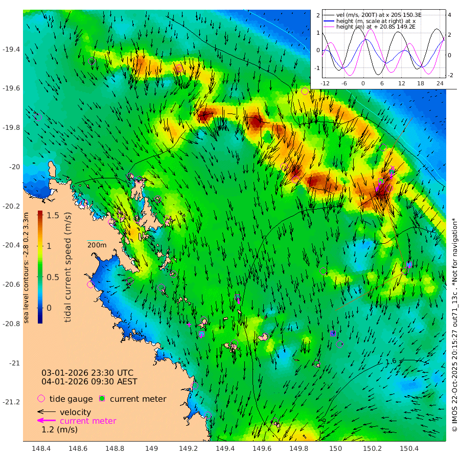 29cm/s -169T +10cm/s rms + 2cm/s 5T. Brampton I 18m 44cm/s 168T +9cm/s rms + 6cm/s 66T. Wigton I 38m 8cm/s -134T +7cm/s rms + 8cm/s 141T. Tern I 47m 47cm/s -175T +7cm/s rms + 12cm/s 54T. N Bugatti Rf 64m 73cm/s -152T +3cm/s rms + 13cm/s 178T. W Bugatti Rf 70m 23cm/s 178T +3cm/s rms + 3cm/s -130T. Creal Rf 69m 153cm Holbourne I 199cm Tern I 145cm Bugatti Rf 160cm Creal Rf 139cm White Tip I 136cm Wallaby Reef 141cm Kennedy Reef 146cm Unnamed Reef No. 2 147cm Tideway Reef 157cm Hayman Island 173cm Square Reef 167cm Double Bay 159cm Molle Island 150cm Cid Harbour 154cm Hook Island 137cm Border Island 140cm Haslewood Island 154cm Shute Harbour 157cm Thomas Island 184cm Credlin Reef 170cm East Repulse Island 154cm Blacksmith Island 156cm Laguna Quays 180cm Carlisle Island (Off) 186cm St. Bees Island 167cm Scawfell Island 196cm Penrith Island 188cm Mackay Outer Harbour 201cm Hay Point 216cm Prudhoe Island