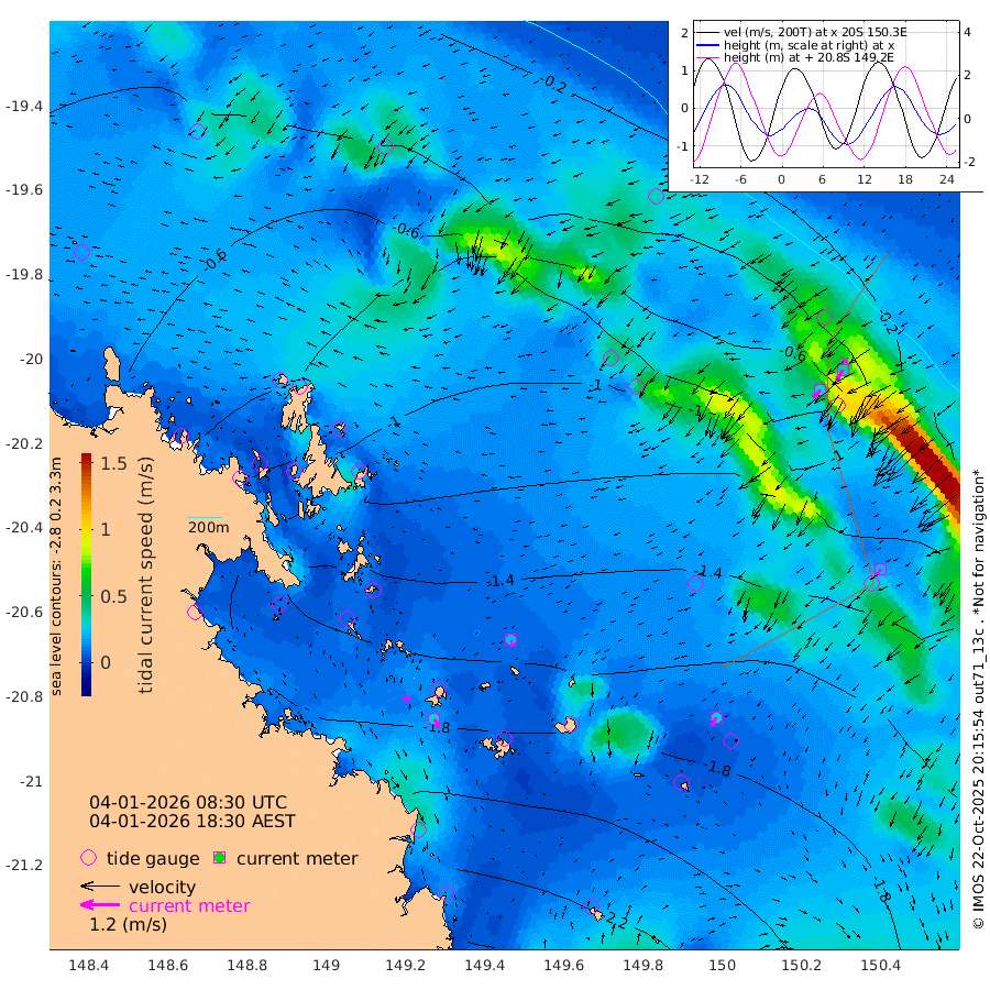 31cm/s 151T +10cm/s rms + 2cm/s 5T. Brampton I 18m 21cm/s 177T +9cm/s rms + 6cm/s 66T. Wigton I 38m 28cm/s -155T +7cm/s rms + 8cm/s 141T. Tern I 47m 36cm/s -149T +7cm/s rms + 12cm/s 54T. N Bugatti Rf 64m 31cm/s -136T +3cm/s rms + 13cm/s 178T. W Bugatti Rf 70m 21cm/s -141T +3cm/s rms + 3cm/s -130T. Creal Rf 69m -64cm Holbourne I -187cm Tern I -83cm Bugatti Rf -126cm Creal Rf -53cm White Tip I -52cm Wallaby Reef -37cm Kennedy Reef -35cm Unnamed Reef No. 2 -103cm Tideway Reef -95cm Hayman Island -135cm Square Reef -99cm Double Bay -116cm Molle Island -120cm Cid Harbour -98cm Hook Island -109cm Border Island -124cm Haslewood Island -122cm Shute Harbour -162cm Thomas Island -165cm Credlin Reef -185cm East Repulse Island -171cm Blacksmith Island -192cm Laguna Quays -184cm Carlisle Island (Off) -205cm St. Bees Island -184cm Scawfell Island -197cm Penrith Island -225cm Mackay Outer Harbour -240cm Hay Point -234cm Prudhoe Island
