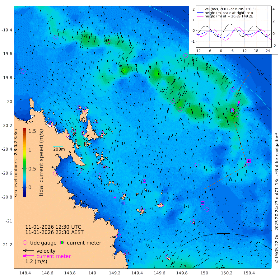 8cm/s 58T +10cm/s rms + 2cm/s 5T. Brampton I 18m 9cm/s -16T +9cm/s rms + 6cm/s 66T. Wigton I 38m 2cm/s 150T +7cm/s rms + 8cm/s 141T. Tern I 47m 14cm/s -6T +7cm/s rms + 12cm/s 54T. N Bugatti Rf 64m 22cm/s 29T +3cm/s rms + 13cm/s 178T. W Bugatti Rf 70m 6cm/s 10T +3cm/s rms + 3cm/s -130T. Creal Rf 69m -73cm Holbourne I -95cm Tern I -66cm Bugatti Rf -74cm Creal Rf -61cm White Tip I -63cm Wallaby Reef -73cm Kennedy Reef -62cm Unnamed Reef No. 2 -70cm Tideway Reef -74cm Hayman Island -78cm Square Reef -81cm Double Bay -92cm Molle Island -69cm Cid Harbour -78cm Hook Island -66cm Border Island -63cm Haslewood Island -75cm Shute Harbour -79cm Thomas Island -81cm Credlin Reef -80cm East Repulse Island -76cm Blacksmith Island -84cm Laguna Quays -83cm Carlisle Island (Off) -78cm St. Bees Island -68cm Scawfell Island -92cm Penrith Island -97cm Mackay Outer Harbour -103cm Hay Point -105cm Prudhoe Island