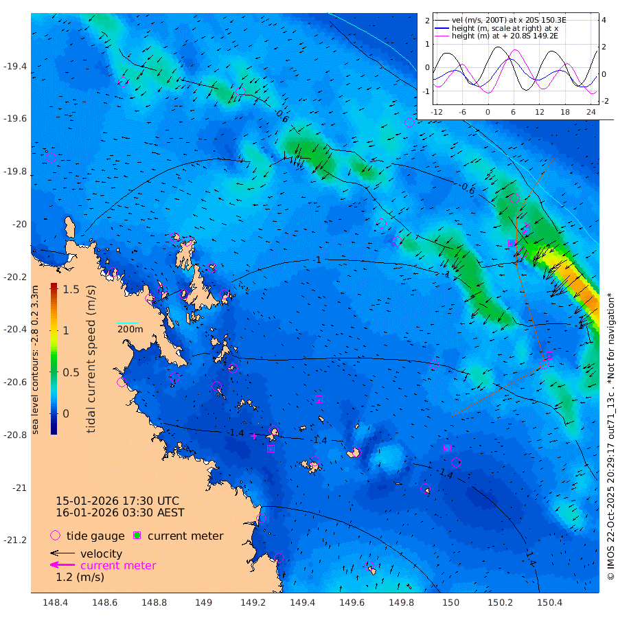 8cm/s -162T +10cm/s rms + 2cm/s 5T. Brampton I 18m 10cm/s -151T +9cm/s rms + 6cm/s 66T. Wigton I 38m 15cm/s -139T +7cm/s rms + 8cm/s 141T. Tern I 47m 19cm/s -132T +7cm/s rms + 12cm/s 54T. N Bugatti Rf 64m 13cm/s -114T +3cm/s rms + 13cm/s 178T. W Bugatti Rf 70m 10cm/s -124T +3cm/s rms + 3cm/s -130T. Creal Rf 69m -85cm Holbourne I -141cm Tern I -76cm Bugatti Rf -102cm Creal Rf -58cm White Tip I -72cm Wallaby Reef -66cm Kennedy Reef -49cm Unnamed Reef No. 2 -99cm Tideway Reef -88cm Hayman Island -127cm Square Reef -100cm Double Bay -111cm Molle Island -102cm Cid Harbour -98cm Hook Island -98cm Border Island -103cm Haslewood Island -108cm Shute Harbour -125cm Thomas Island -125cm Credlin Reef -131cm East Repulse Island -126cm Blacksmith Island -144cm Laguna Quays -134cm Carlisle Island (Off) -144cm St. Bees Island -130cm Scawfell Island -140cm Penrith Island -156cm Mackay Outer Harbour -164cm Hay Point -174cm Prudhoe Island
