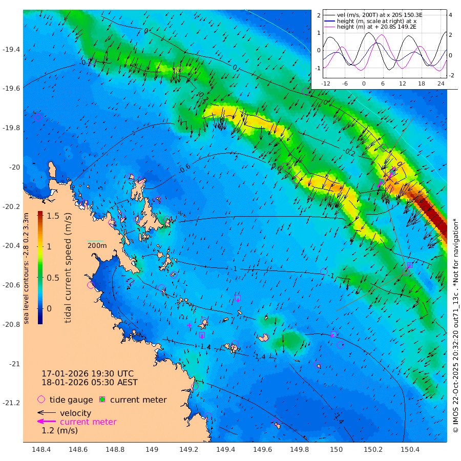 23cm/s -176T +10cm/s rms + 2cm/s 5T. Brampton I 18m 26cm/s -177T +9cm/s rms + 6cm/s 66T. Wigton I 38m 25cm/s -144T +7cm/s rms + 8cm/s 141T. Tern I 47m 43cm/s -151T +7cm/s rms + 12cm/s 54T. N Bugatti Rf 64m 46cm/s -142T +3cm/s rms + 13cm/s 178T. W Bugatti Rf 70m 21cm/s -144T +3cm/s rms + 3cm/s -130T. Creal Rf 69m -42cm Holbourne I -120cm Tern I -45cm Bugatti Rf -79cm Creal Rf -20cm White Tip I -31cm Wallaby Reef -22cm Kennedy Reef -1cm Unnamed Reef No. 2 -70cm Tideway Reef -52cm Hayman Island -99cm Square Reef -63cm Double Bay -75cm Molle Island -75cm Cid Harbour -66cm Hook Island -74cm Border Island -81cm Haslewood Island -80cm Shute Harbour -108cm Thomas Island -102cm Credlin Reef -112cm East Repulse Island -114cm Blacksmith Island -136cm Laguna Quays -116cm Carlisle Island (Off) -138cm St. Bees Island -120cm Scawfell Island -125cm Penrith Island -149cm Mackay Outer Harbour -157cm Hay Point -163cm Prudhoe Island