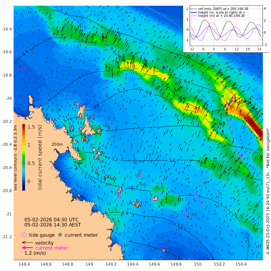 35cm/s -16T +10cm/s rms + 2cm/s 5T. Brampton I 18m 38cm/s -5T +9cm/s rms + 6cm/s 66T. Wigton I 38m 29cm/s 26T +7cm/s rms + 8cm/s 141T. Tern I 47m 55cm/s 25T +7cm/s rms + 12cm/s 54T. N Bugatti Rf 64m 56cm/s 34T +3cm/s rms + 13cm/s 178T. W Bugatti Rf 70m 26cm/s 27T +3cm/s rms + 3cm/s -130T. Creal Rf 69m 54cm Holbourne I 138cm Tern I 61cm Bugatti Rf 95cm Creal Rf 36cm White Tip I 40cm Wallaby Reef 21cm Kennedy Reef 18cm Unnamed Reef No. 2 85cm Tideway Reef 69cm Hayman Island 106cm Square Reef 93cm Double Bay 106cm Molle Island 90cm Cid Harbour 84cm Hook Island 90cm Border Island 104cm Haslewood Island 99cm Shute Harbour 127cm Thomas Island 124cm Credlin Reef 147cm East Repulse Island 131cm Blacksmith Island 162cm Laguna Quays 149cm Carlisle Island (Off) 162cm St. Bees Island 140cm Scawfell Island 143cm Penrith Island 177cm Mackay Outer Harbour 185cm Hay Point 179cm Prudhoe Island