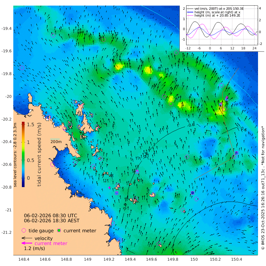 13cm/s 19T +10cm/s rms + 2cm/s 5T. Brampton I 18m 25cm/s -13T +9cm/s rms + 6cm/s 66T. Wigton I 38m 1cm/s -91T +7cm/s rms + 8cm/s 141T. Tern I 47m 24cm/s 5T +7cm/s rms + 12cm/s 54T. N Bugatti Rf 64m 32cm/s 28T +3cm/s rms + 13cm/s 178T. W Bugatti Rf 70m 12cm/s -16T +3cm/s rms + 3cm/s -130T. Creal Rf 69m -59cm Holbourne I -114cm Tern I -65cm Bugatti Rf -84cm Creal Rf -54cm White Tip I -48cm Wallaby Reef -61cm Kennedy Reef -50cm Unnamed Reef No. 2 -61cm Tideway Reef -66cm Hayman Island -79cm Square Reef -63cm Double Bay -65cm Molle Island -67cm Cid Harbour -66cm Hook Island -58cm Border Island -59cm Haslewood Island -68cm Shute Harbour -83cm Thomas Island -91cm Credlin Reef -80cm East Repulse Island -86cm Blacksmith Island -85cm Laguna Quays -87cm Carlisle Island (Off) -98cm St. Bees Island -83cm Scawfell Island -113cm Penrith Island -113cm Mackay Outer Harbour -125cm Hay Point -133cm Prudhoe Island