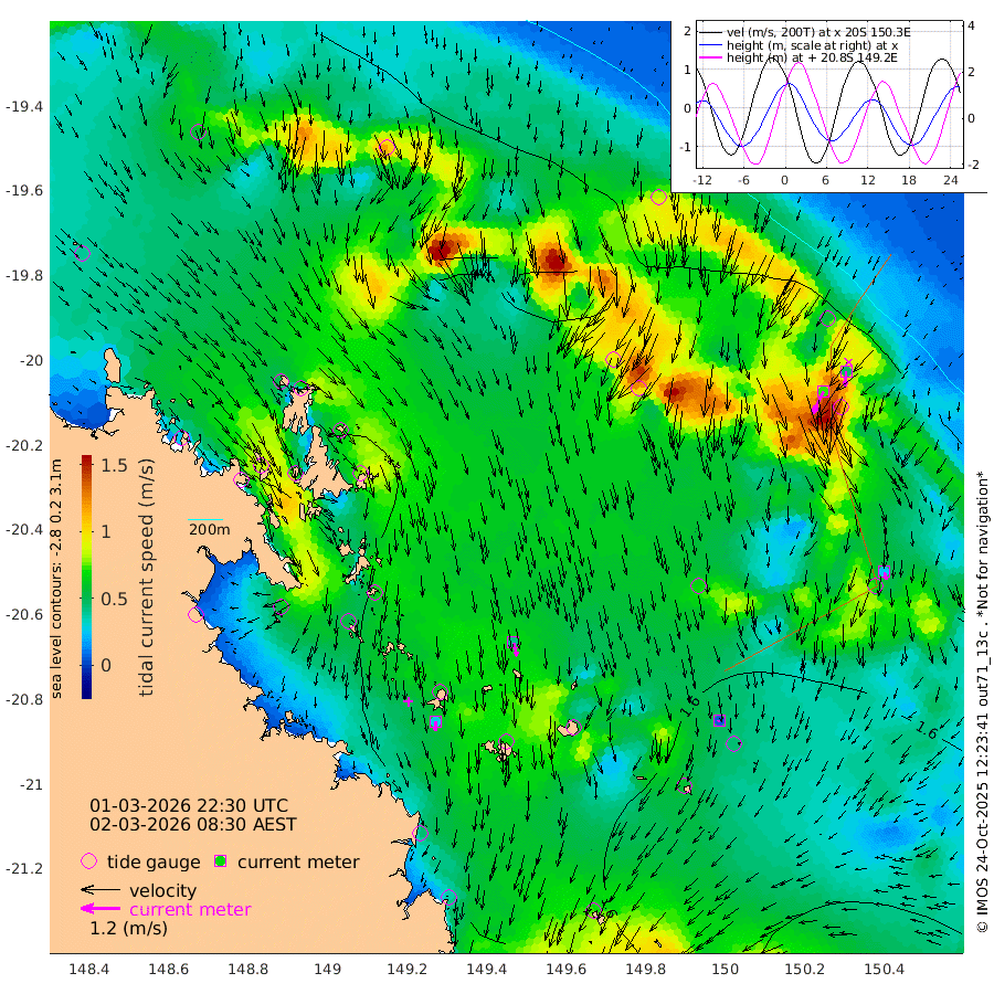 28cm/s -175T +10cm/s rms + 2cm/s 5T. Brampton I 18m 43cm/s 166T +9cm/s rms + 6cm/s 66T. Wigton I 38m 4cm/s -163T +7cm/s rms + 8cm/s 141T. Tern I 47m 46cm/s -176T +7cm/s rms + 12cm/s 54T. N Bugatti Rf 64m 74cm/s -154T +3cm/s rms + 13cm/s 178T. W Bugatti Rf 70m 24cm/s 170T +3cm/s rms + 3cm/s -130T. Creal Rf 69m 159cm Holbourne I 211cm Tern I 147cm Bugatti Rf 166cm Creal Rf 137cm White Tip I 141cm Wallaby Reef 140cm Kennedy Reef 143cm Unnamed Reef No. 2 156cm Tideway Reef 166cm Hayman Island 186cm Square Reef 176cm Double Bay 168cm Molle Island 160cm Cid Harbour 160cm Hook Island 145cm Border Island 152cm Haslewood Island 165cm Shute Harbour 169cm Thomas Island 195cm Credlin Reef 183cm East Repulse Island 165cm Blacksmith Island 171cm Laguna Quays 193cm Carlisle Island (Off) 200cm St. Bees Island 181cm Scawfell Island 212cm Penrith Island 203cm Mackay Outer Harbour 217cm Hay Point 235cm Prudhoe Island