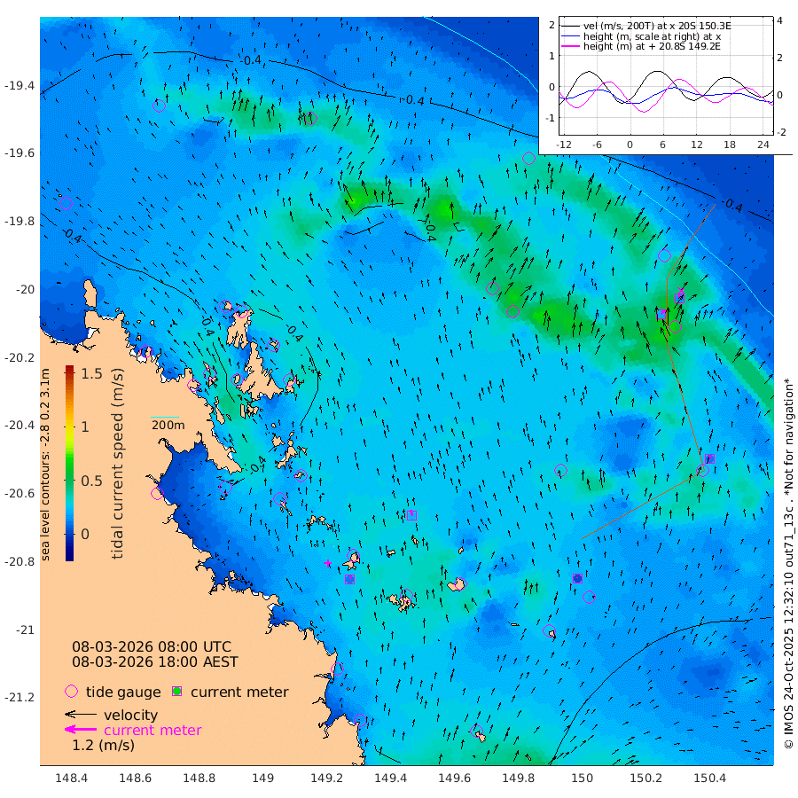 10cm/s 11T +10cm/s rms + 2cm/s 5T. Brampton I 18m 21cm/s -12T +9cm/s rms + 6cm/s 66T. Wigton I 38m 1cm/s 32T +7cm/s rms + 8cm/s 141T. Tern I 47m 14cm/s -3T +7cm/s rms + 12cm/s 54T. N Bugatti Rf 64m 20cm/s 32T +3cm/s rms + 13cm/s 178T. W Bugatti Rf 70m 11cm/s -10T +3cm/s rms + 3cm/s -130T. Creal Rf 69m -49cm Holbourne I -90cm Tern I -57cm Bugatti Rf -71cm Creal Rf -49cm White Tip I -43cm Wallaby Reef -57cm Kennedy Reef -43cm Unnamed Reef No. 2 -51cm Tideway Reef -55cm Hayman Island -71cm Square Reef -40cm Double Bay -55cm Molle Island -61cm Cid Harbour -55cm Hook Island -55cm Border Island -52cm Haslewood Island -56cm Shute Harbour -66cm Thomas Island -75cm Credlin Reef -62cm East Repulse Island -76cm Blacksmith Island -68cm Laguna Quays -70cm Carlisle Island (Off) -82cm St. Bees Island -72cm Scawfell Island -94cm Penrith Island -89cm Mackay Outer Harbour -96cm Hay Point -99cm Prudhoe Island