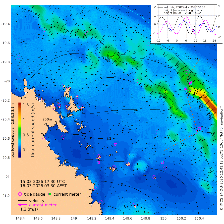 13cm/s -175T +10cm/s rms + 2cm/s 5T. Brampton I 18m 13cm/s -156T +9cm/s rms + 6cm/s 66T. Wigton I 38m 22cm/s -141T +7cm/s rms + 8cm/s 141T. Tern I 47m 27cm/s -138T +7cm/s rms + 12cm/s 54T. N Bugatti Rf 64m 18cm/s -131T +3cm/s rms + 13cm/s 178T. W Bugatti Rf 70m 16cm/s -118T +3cm/s rms + 3cm/s -130T. Creal Rf 69m -65cm Holbourne I -152cm Tern I -68cm Bugatti Rf -104cm Creal Rf -43cm White Tip I -55cm Wallaby Reef -45cm Kennedy Reef -25cm Unnamed Reef No. 2 -92cm Tideway Reef -82cm Hayman Island -128cm Square Reef -83cm Double Bay -91cm Molle Island -103cm Cid Harbour -84cm Hook Island -97cm Border Island -102cm Haslewood Island -104cm Shute Harbour -131cm Thomas Island -132cm Credlin Reef -136cm East Repulse Island -142cm Blacksmith Island -155cm Laguna Quays -140cm Carlisle Island (Off) -172cm St. Bees Island -152cm Scawfell Island -156cm Penrith Island -174cm Mackay Outer Harbour -184cm Hay Point -192cm Prudhoe Island
