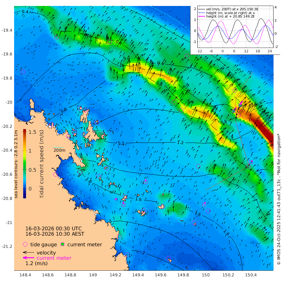 32cm/s -11T +10cm/s rms + 2cm/s 5T. Brampton I 18m 32cm/s 2T +9cm/s rms + 6cm/s 66T. Wigton I 38m 29cm/s 32T +7cm/s rms + 8cm/s 141T. Tern I 47m 54cm/s 28T +7cm/s rms + 12cm/s 54T. N Bugatti Rf 64m 45cm/s 35T +3cm/s rms + 13cm/s 178T. W Bugatti Rf 70m 24cm/s 40T +3cm/s rms + 3cm/s -130T. Creal Rf 69m 74cm Holbourne I 167cm Tern I 80cm Bugatti Rf 119cm Creal Rf 53cm White Tip I 62cm Wallaby Reef 45cm Kennedy Reef 31cm Unnamed Reef No. 2 109cm Tideway Reef 90cm Hayman Island 148cm Square Reef 94cm Double Bay 117cm Molle Island 118cm Cid Harbour 98cm Hook Island 116cm Border Island 121cm Haslewood Island 120cm Shute Harbour 153cm Thomas Island 151cm Credlin Reef 158cm East Repulse Island 163cm Blacksmith Island 183cm Laguna Quays 162cm Carlisle Island (Off) 182cm St. Bees Island 162cm Scawfell Island 172cm Penrith Island 200cm Mackay Outer Harbour 209cm Hay Point 215cm Prudhoe Island