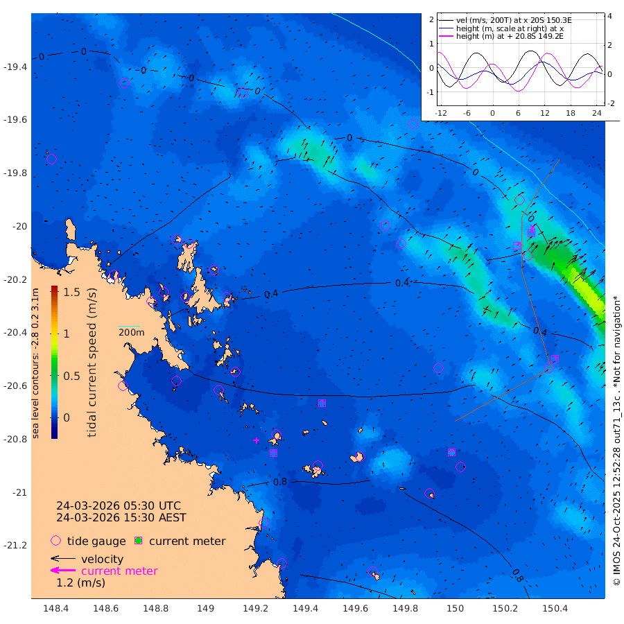 12cm/s -19T +10cm/s rms + 2cm/s 5T. Brampton I 18m 12cm/s -2T +9cm/s rms + 6cm/s 66T. Wigton I 38m 14cm/s 32T +7cm/s rms + 8cm/s 141T. Tern I 47m 15cm/s 26T +7cm/s rms + 12cm/s 54T. N Bugatti Rf 64m 20cm/s 41T +3cm/s rms + 13cm/s 178T. W Bugatti Rf 70m 12cm/s 28T +3cm/s rms + 3cm/s -130T. Creal Rf 69m 1cm Holbourne I 58cm Tern I 5cm Bugatti Rf 26cm Creal Rf -10cm White Tip I -7cm Wallaby Reef -11cm Kennedy Reef -18cm Unnamed Reef No. 2 12cm Tideway Reef 14cm Hayman Island 16cm Square Reef 20cm Double Bay 29cm Molle Island 26cm Cid Harbour 16cm Hook Island 21cm Border Island 32cm Haslewood Island 28cm Shute Harbour 45cm Thomas Island 40cm Credlin Reef 63cm East Repulse Island 53cm Blacksmith Island 66cm Laguna Quays 61cm Carlisle Island (Off) 63cm St. Bees Island 64cm Scawfell Island 61cm Penrith Island 79cm Mackay Outer Harbour 86cm Hay Point 71cm Prudhoe Island