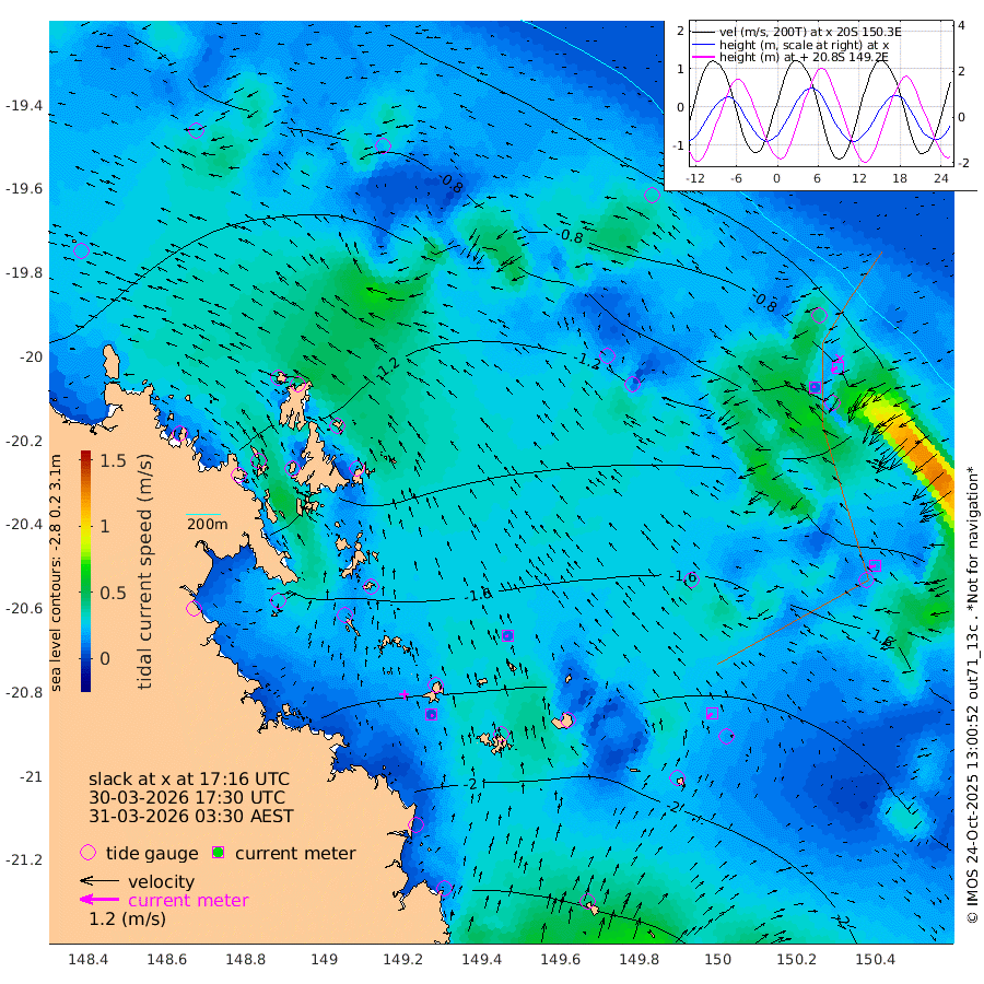 7cm/s 158T +10cm/s rms + 2cm/s 5T. Brampton I 18m 8cm/s -100T +9cm/s rms + 6cm/s 66T. Wigton I 38m 23cm/s -142T +7cm/s rms + 8cm/s 141T. Tern I 47m 22cm/s -116T +7cm/s rms + 12cm/s 54T. N Bugatti Rf 64m 8cm/s -57T +3cm/s rms + 13cm/s 178T. W Bugatti Rf 70m 16cm/s -95T +3cm/s rms + 3cm/s -130T. Creal Rf 69m -105cm Holbourne I -218cm Tern I -109cm Bugatti Rf -153cm Creal Rf -78cm White Tip I -90cm Wallaby Reef -79cm Kennedy Reef -66cm Unnamed Reef No. 2 -136cm Tideway Reef -127cm Hayman Island -174cm Square Reef -134cm Double Bay -134cm Molle Island -152cm Cid Harbour -130cm Hook Island -139cm Border Island -152cm Haslewood Island -153cm Shute Harbour -185cm Thomas Island -198cm Credlin Reef -209cm East Repulse Island -192cm Blacksmith Island -210cm Laguna Quays -213cm Carlisle Island (Off) -241cm St. Bees Island -204cm Scawfell Island -218cm Penrith Island -242cm Mackay Outer Harbour -258cm Hay Point -264cm Prudhoe Island
