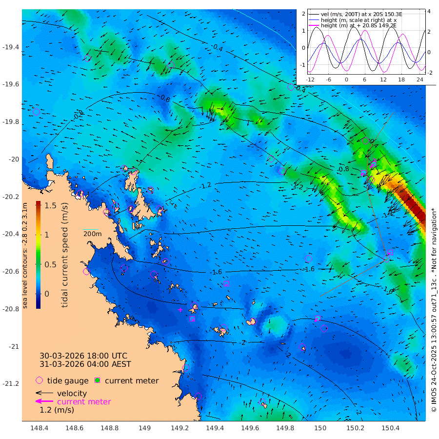 18cm/s 167T +10cm/s rms + 2cm/s 5T. Brampton I 18m 16cm/s -160T +9cm/s rms + 6cm/s 66T. Wigton I 38m 29cm/s -144T +7cm/s rms + 8cm/s 141T. Tern I 47m 37cm/s -138T +7cm/s rms + 12cm/s 54T. N Bugatti Rf 64m 25cm/s -130T +3cm/s rms + 13cm/s 178T. W Bugatti Rf 70m 21cm/s -119T +3cm/s rms + 3cm/s -130T. Creal Rf 69m -84cm Holbourne I -206cm Tern I -94cm Bugatti Rf -141cm Creal Rf -60cm White Tip I -72cm Wallaby Reef -57cm Kennedy Reef -43cm Unnamed Reef No. 2 -124cm Tideway Reef -109cm Hayman Island -161cm Square Reef -115cm Double Bay -121cm Molle Island -141cm Cid Harbour -115cm Hook Island -130cm Border Island -144cm Haslewood Island -141cm Shute Harbour -179cm Thomas Island -187cm Credlin Reef -204cm East Repulse Island -189cm Blacksmith Island -210cm Laguna Quays -206cm Carlisle Island (Off) -236cm St. Bees Island -199cm Scawfell Island -207cm Penrith Island -239cm Mackay Outer Harbour -254cm Hay Point -255cm Prudhoe Island