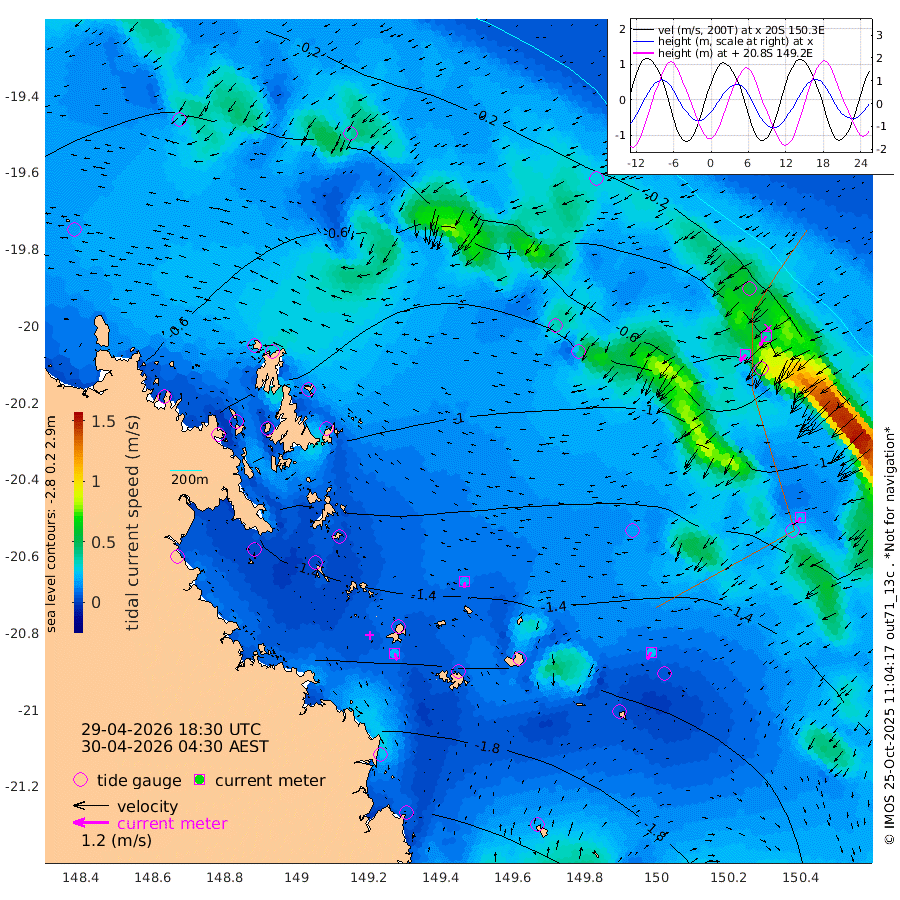 23cm/s 160T +10cm/s rms + 2cm/s 5T. Brampton I 18m 19cm/s -173T +9cm/s rms + 6cm/s 66T. Wigton I 38m 26cm/s -152T +7cm/s rms + 8cm/s 141T. Tern I 47m 38cm/s -146T +7cm/s rms + 12cm/s 54T. N Bugatti Rf 64m 30cm/s -136T +3cm/s rms + 13cm/s 178T. W Bugatti Rf 70m 21cm/s -137T +3cm/s rms + 3cm/s -130T. Creal Rf 69m -57cm Holbourne I -166cm Tern I -67cm Bugatti Rf -110cm Creal Rf -38cm White Tip I -41cm Wallaby Reef -29cm Kennedy Reef -22cm Unnamed Reef No. 2 -89cm Tideway Reef -73cm Hayman Island -118cm Square Reef -90cm Double Bay -84cm Molle Island -99cm Cid Harbour -87cm Hook Island -93cm Border Island -105cm Haslewood Island -105cm Shute Harbour -142cm Thomas Island -144cm Credlin Reef -160cm East Repulse Island -145cm Blacksmith Island -169cm Laguna Quays -161cm Carlisle Island (Off) -191cm St. Bees Island -160cm Scawfell Island -161cm Penrith Island -197cm Mackay Outer Harbour -210cm Hay Point -215cm Prudhoe Island