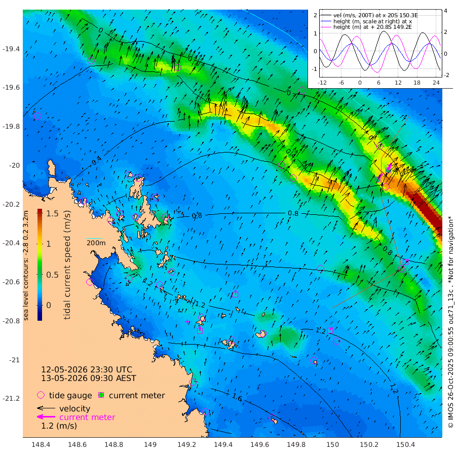 31cm/s -4T +10cm/s rms + 2cm/s 5T. Brampton I 18m 30cm/s 0T +9cm/s rms + 6cm/s 66T. Wigton I 38m 26cm/s 35T +7cm/s rms + 8cm/s 141T. Tern I 47m 50cm/s 24T +7cm/s rms + 12cm/s 54T. N Bugatti Rf 64m 50cm/s 36T +3cm/s rms + 13cm/s 178T. W Bugatti Rf 70m 25cm/s 36T +3cm/s rms + 3cm/s -130T. Creal Rf 69m 29cm Holbourne I 115cm Tern I 37cm Bugatti Rf 73cm Creal Rf 11cm White Tip I 21cm Wallaby Reef 5cm Kennedy Reef -9cm Unnamed Reef No. 2 61cm Tideway Reef 41cm Hayman Island 92cm Square Reef 38cm Double Bay 65cm Molle Island 75cm Cid Harbour 49cm Hook Island 75cm Border Island 80cm Haslewood Island 74cm Shute Harbour 105cm Thomas Island 99cm Credlin Reef 111cm East Repulse Island 115cm Blacksmith Island 134cm Laguna Quays 112cm Carlisle Island (Off) 121cm St. Bees Island 116cm Scawfell Island 118cm Penrith Island 147cm Mackay Outer Harbour 154cm Hay Point 154cm Prudhoe Island
