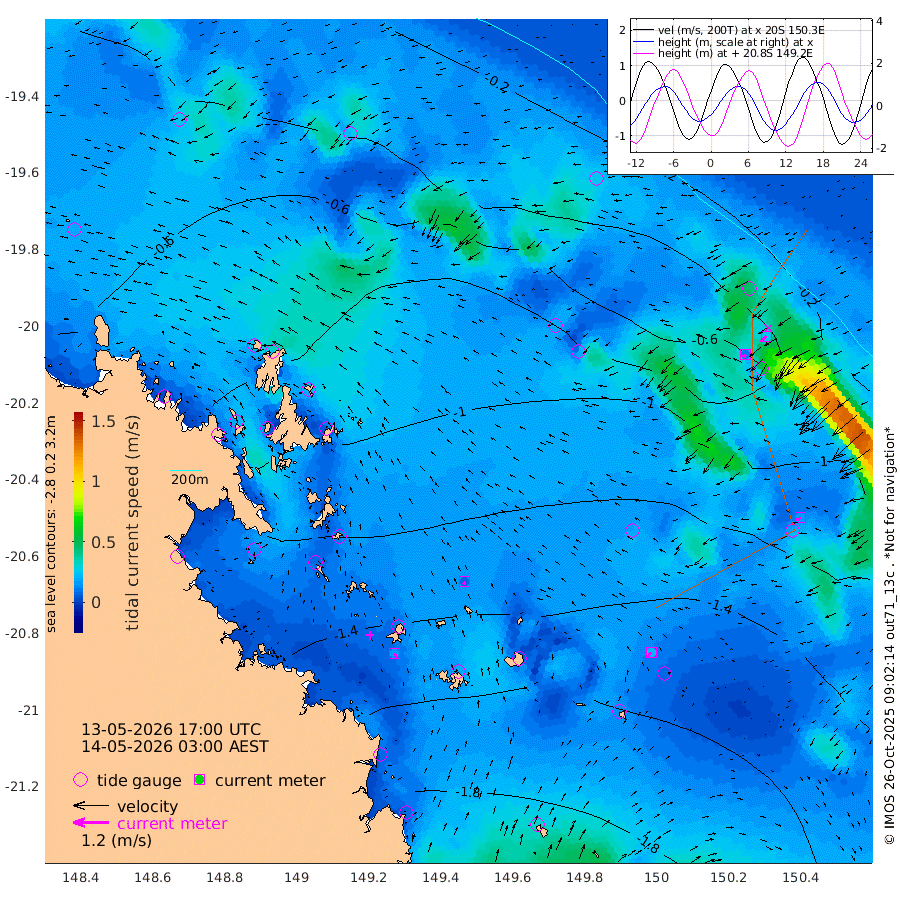 16cm/s 159T +10cm/s rms + 2cm/s 5T. Brampton I 18m 10cm/s -152T +9cm/s rms + 6cm/s 66T. Wigton I 38m 22cm/s -147T +7cm/s rms + 8cm/s 141T. Tern I 47m 26cm/s -138T +7cm/s rms + 12cm/s 54T. N Bugatti Rf 64m 12cm/s -132T +3cm/s rms + 13cm/s 178T. W Bugatti Rf 70m 18cm/s -119T +3cm/s rms + 3cm/s -130T. Creal Rf 69m -59cm Holbourne I -168cm Tern I -70cm Bugatti Rf -111cm Creal Rf -42cm White Tip I -50cm Wallaby Reef -41cm Kennedy Reef -25cm Unnamed Reef No. 2 -90cm Tideway Reef -82cm Hayman Island -124cm Square Reef -73cm Double Bay -88cm Molle Island -114cm Cid Harbour -79cm Hook Island -105cm Border Island -109cm Haslewood Island -108cm Shute Harbour -141cm Thomas Island -146cm Credlin Reef -156cm East Repulse Island -160cm Blacksmith Island -167cm Laguna Quays -157cm Carlisle Island (Off) -183cm St. Bees Island -168cm Scawfell Island -171cm Penrith Island -195cm Mackay Outer Harbour -208cm Hay Point -204cm Prudhoe Island
