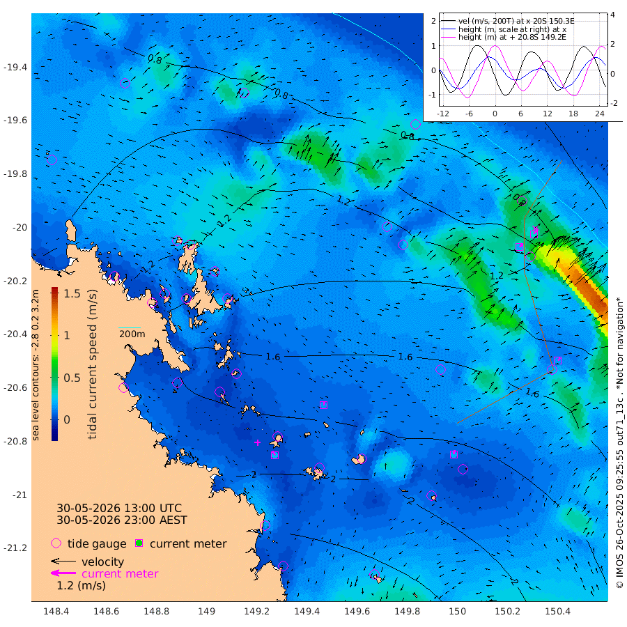 22cm/s -31T +10cm/s rms + 2cm/s 5T. Brampton I 18m 16cm/s 4T +9cm/s rms + 6cm/s 66T. Wigton I 38m 21cm/s 18T +7cm/s rms + 8cm/s 141T. Tern I 47m 32cm/s 38T +7cm/s rms + 12cm/s 54T. N Bugatti Rf 64m 20cm/s 48T +3cm/s rms + 13cm/s 178T. W Bugatti Rf 70m 15cm/s 34T +3cm/s rms + 3cm/s -130T. Creal Rf 69m 113cm Holbourne I 201cm Tern I 115cm Bugatti Rf 149cm Creal Rf 91cm White Tip I 95cm Wallaby Reef 89cm Kennedy Reef 78cm Unnamed Reef No. 2 137cm Tideway Reef 123cm Hayman Island 169cm Square Reef 145cm Double Bay 153cm Molle Island 140cm Cid Harbour 140cm Hook Island 135cm Border Island 141cm Haslewood Island 150cm Shute Harbour 178cm Thomas Island 181cm Credlin Reef 190cm East Repulse Island 179cm Blacksmith Island 203cm Laguna Quays 193cm Carlisle Island (Off) 216cm St. Bees Island 187cm Scawfell Island 199cm Penrith Island 227cm Mackay Outer Harbour 239cm Hay Point 247cm Prudhoe Island