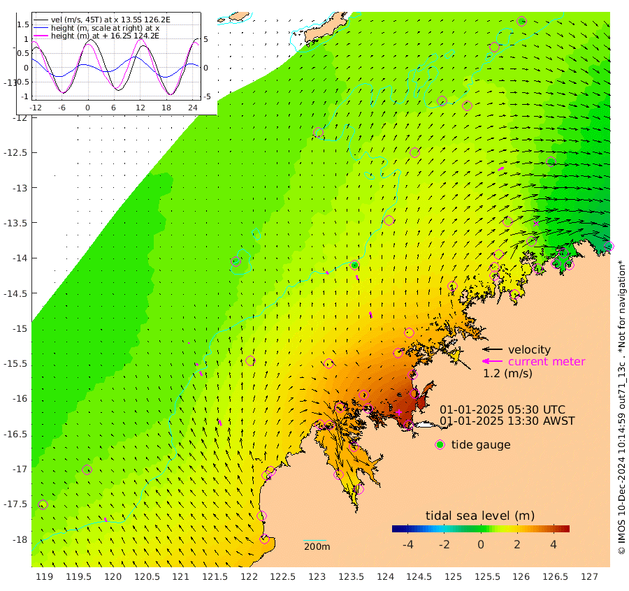 19cm/s -40T +10cm/s rms + 1cm/s 1T. NWSBRW 205m 27cm/s -29T +11cm/s rms + 6cm/s -110T. NWSROW 199m 37cm/s -22T +5cm/s rms + 2cm/s 65T. CAM050 58m 28cm/s -17T +12cm/s rms + 5cm/s 92T. CAM100 99m 6cm/s -14T +7cm/s rms + 1cm/s -85T. KIM400 396m 15cm/s -23T +9cm/s rms + 5cm/s -119T. KIM200 208m 27cm/s -22T +11cm/s rms + 5cm/s -147T. KIM100 99m 35cm/s -19T +8cm/s rms + 3cm/s -103T. KIM050 59m 37cm/s 61T +4cm/s rms + 2cm/s 23T. TIMORS88 91m 96cm Imperieuse Reef 50cm Mermaid Reef 170cm Broome 114cm Cape Baskerville 199cm Red Bluff 102cm Cape Boileau 42cm Scott Reef (WA) 73cm Ashmore Reef 249cm Karrakatta Bay 242cm Sunday Island 225cm Valentine Island 187cm Derby 235cm Port Usborne 246cm Bedford Islands 281cm Yampi Sound (Koolan Island) 294cm Macleay Island 175cm Adele Island 7cm Browse Island 370cm Shale Island 330cm Lizard Island 354cm Hall Point 217cm Degerando Island 180cm White Island 67cm Skua No. 4 Well 72cm Jabiru 132cm Maret Island 113cm Baudin Island 105cm Cape Voltaire (Krait Bay) 61cm Dillon Shoal 33cm Laminaria 118cm Port Warrender 46cm Troughton Island 98cm Cassini Island 60cm West Holothuria Reef Offshore 45cm Jar Island 93cm Lynher Bank 94cm Heywood Shoal 61cm Pee Shoal 16cm Van Cloon Shoal -16cm Carronade Island -20cm Guy Point -21cm Napier Broome Bay -109cm Lesueur Island