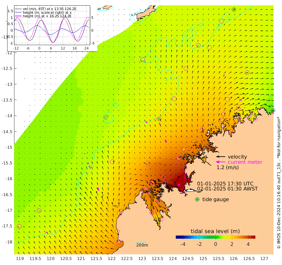 27cm/s -42T +10cm/s rms + 1cm/s 1T. NWSBRW 205m 33cm/s -28T +11cm/s rms + 6cm/s -110T. NWSROW 199m 44cm/s -31T +5cm/s rms + 2cm/s 65T. CAM050 58m 37cm/s -25T +12cm/s rms + 5cm/s 92T. CAM100 99m 9cm/s -28T +7cm/s rms + 1cm/s -85T. KIM400 396m 18cm/s -31T +9cm/s rms + 5cm/s -119T. KIM200 208m 35cm/s -26T +11cm/s rms + 5cm/s -147T. KIM100 99m 44cm/s -23T +8cm/s rms + 3cm/s -103T. KIM050 59m 29cm/s 30T +4cm/s rms + 2cm/s 23T. TIMORS88 91m 152cm Imperieuse Reef 75cm Mermaid Reef 228cm Broome 168cm Cape Baskerville 238cm Red Bluff 178cm Cape Boileau 72cm Scott Reef (WA) 119cm Ashmore Reef 322cm Karrakatta Bay 295cm Sunday Island 316cm Valentine Island 247cm Derby 295cm Port Usborne 296cm Bedford Islands 353cm Yampi Sound (Koolan Island) 371cm Macleay Island 226cm Adele Island 58cm Browse Island 453cm Shale Island 435cm Lizard Island 404cm Hall Point 288cm Degerando Island 251cm White Island 119cm Skua No. 4 Well 121cm Jabiru 202cm Maret Island 189cm Baudin Island 186cm Cape Voltaire (Krait Bay) 114cm Dillon Shoal 37cm Laminaria 228cm Port Warrender 159cm Troughton Island 182cm Cassini Island 136cm West Holothuria Reef Offshore 150cm Jar Island 132cm Lynher Bank 147cm Heywood Shoal 118cm Pee Shoal 104cm Van Cloon Shoal 91cm Carronade Island 88cm Guy Point 100cm Napier Broome Bay 28cm Lesueur Island