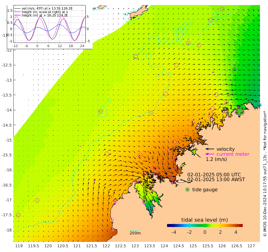 14cm/s -21T +10cm/s rms + 1cm/s 1T. NWSBRW 205m 14cm/s -2T +11cm/s rms + 6cm/s -110T. NWSROW 199m 7cm/s 92T +5cm/s rms + 2cm/s 65T. CAM050 58m 9cm/s 62T +12cm/s rms + 5cm/s 92T. CAM100 99m 6cm/s 48T +7cm/s rms + 1cm/s -85T. KIM400 396m 10cm/s 45T +9cm/s rms + 5cm/s -119T. KIM200 208m 16cm/s 38T +11cm/s rms + 5cm/s -147T. KIM100 99m 33cm/s 27T +8cm/s rms + 3cm/s -103T. KIM050 59m 24cm/s 63T +4cm/s rms + 2cm/s 23T. TIMORS88 91m 94cm Imperieuse Reef 101cm Mermaid Reef 286cm Broome 198cm Cape Baskerville 257cm Red Bluff 181cm Cape Boileau 88cm Scott Reef (WA) 112cm Ashmore Reef 269cm Karrakatta Bay 233cm Sunday Island 73cm Valentine Island -6cm Derby 120cm Port Usborne 296cm Bedford Islands 343cm Yampi Sound (Koolan Island) 374cm Macleay Island 241cm Adele Island 99cm Browse Island 419cm Shale Island 373cm Lizard Island 412cm Hall Point 294cm Degerando Island 264cm White Island 115cm Skua No. 4 Well 99cm Jabiru 220cm Maret Island 194cm Baudin Island 183cm Cape Voltaire (Krait Bay) 71cm Dillon Shoal 61cm Laminaria 184cm Port Warrender 87cm Troughton Island 173cm Cassini Island 108cm West Holothuria Reef Offshore 85cm Jar Island 150cm Lynher Bank 160cm Heywood Shoal 87cm Pee Shoal 28cm Van Cloon Shoal 11cm Carronade Island 7cm Guy Point 6cm Napier Broome Bay -115cm Lesueur Island
