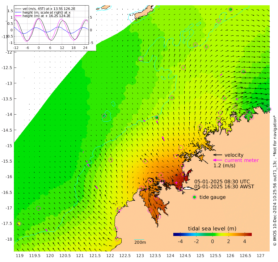 27cm/s -49T +10cm/s rms + 1cm/s 1T. NWSBRW 205m 37cm/s -33T +11cm/s rms + 6cm/s -110T. NWSROW 199m 64cm/s -27T +5cm/s rms + 2cm/s 65T. CAM050 58m 48cm/s -26T +12cm/s rms + 5cm/s 92T. CAM100 99m 9cm/s -31T +7cm/s rms + 1cm/s -85T. KIM400 396m 22cm/s -37T +9cm/s rms + 5cm/s -119T. KIM200 208m 43cm/s -33T +11cm/s rms + 5cm/s -147T. KIM100 99m 47cm/s -39T +8cm/s rms + 3cm/s -103T. KIM050 59m 33cm/s 48T +4cm/s rms + 2cm/s 23T. TIMORS88 91m 116cm Imperieuse Reef 31cm Mermaid Reef 114cm Broome 73cm Cape Baskerville 132cm Red Bluff 60cm Cape Boileau 28cm Scott Reef (WA) 68cm Ashmore Reef 251cm Karrakatta Bay 252cm Sunday Island 341cm Valentine Island 324cm Derby 334cm Port Usborne 233cm Bedford Islands 259cm Yampi Sound (Koolan Island) 270cm Macleay Island 146cm Adele Island -20cm Browse Island 360cm Shale Island 334cm Lizard Island 178cm Hall Point 182cm Degerando Island 143cm White Island 61cm Skua No. 4 Well 50cm Jabiru 99cm Maret Island 88cm Baudin Island 80cm Cape Voltaire (Krait Bay) 61cm Dillon Shoal 26cm Laminaria 95cm Port Warrender 65cm Troughton Island 80cm Cassini Island 51cm West Holothuria Reef Offshore 56cm Jar Island 75cm Lynher Bank 55cm Heywood Shoal 64cm Pee Shoal 33cm Van Cloon Shoal -2cm Carronade Island -9cm Guy Point -8cm Napier Broome Bay -45cm Lesueur Island