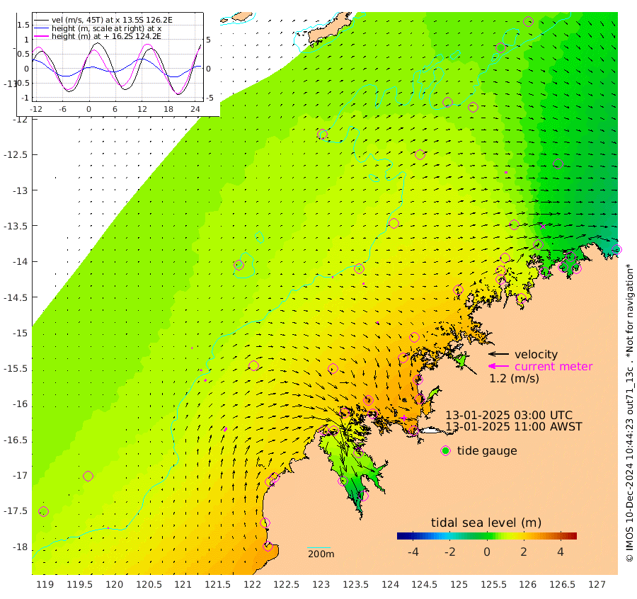 9cm/s -3T +10cm/s rms + 1cm/s 1T. NWSBRW 205m 9cm/s 8T +11cm/s rms + 6cm/s -110T. NWSROW 199m 12cm/s 114T +5cm/s rms + 2cm/s 65T. CAM050 58m 9cm/s 87T +12cm/s rms + 5cm/s 92T. CAM100 99m 5cm/s 65T +7cm/s rms + 1cm/s -85T. KIM400 396m 9cm/s 57T +9cm/s rms + 5cm/s -119T. KIM200 208m 13cm/s 54T +11cm/s rms + 5cm/s -147T. KIM100 99m 26cm/s 38T +8cm/s rms + 3cm/s -103T. KIM050 59m 18cm/s 77T +4cm/s rms + 2cm/s 23T. TIMORS88 91m 63cm Imperieuse Reef 77cm Mermaid Reef 219cm Broome 158cm Cape Baskerville 197cm Red Bluff 143cm Cape Boileau 72cm Scott Reef (WA) 78cm Ashmore Reef 202cm Karrakatta Bay 183cm Sunday Island 72cm Valentine Island -4cm Derby 92cm Port Usborne 244cm Bedford Islands 253cm Yampi Sound (Koolan Island) 304cm Macleay Island 191cm Adele Island 79cm Browse Island 300cm Shale Island 274cm Lizard Island 301cm Hall Point 221cm Degerando Island 191cm White Island 88cm Skua No. 4 Well 81cm Jabiru 166cm Maret Island 137cm Baudin Island 127cm Cape Voltaire (Krait Bay) 43cm Dillon Shoal 48cm Laminaria 128cm Port Warrender 46cm Troughton Island 119cm Cassini Island 69cm West Holothuria Reef Offshore 35cm Jar Island 117cm Lynher Bank 118cm Heywood Shoal 66cm Pee Shoal 2cm Van Cloon Shoal -22cm Carronade Island -21cm Guy Point -26cm Napier Broome Bay -133cm Lesueur Island