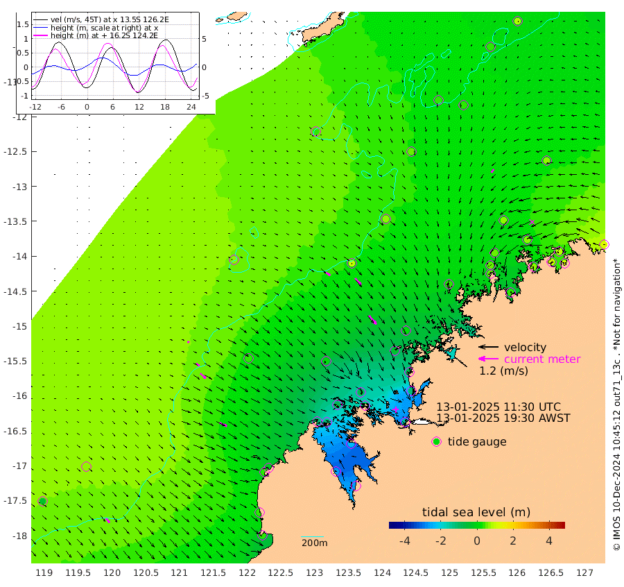 32cm/s 124T +10cm/s rms + 1cm/s 1T. NWSBRW 205m 34cm/s 140T +11cm/s rms + 6cm/s -110T. NWSROW 199m 68cm/s 140T +5cm/s rms + 2cm/s 65T. CAM050 58m 53cm/s 138T +12cm/s rms + 5cm/s 92T. CAM100 99m 11cm/s 122T +7cm/s rms + 1cm/s -85T. KIM400 396m 24cm/s 126T +9cm/s rms + 5cm/s -119T. KIM200 208m 44cm/s 132T +11cm/s rms + 5cm/s -147T. KIM100 99m 48cm/s 116T +8cm/s rms + 3cm/s -103T. KIM050 59m 25cm/s -138T +4cm/s rms + 2cm/s 23T. TIMORS88 91m -35cm Imperieuse Reef 66cm Mermaid Reef 36cm Broome 42cm Cape Baskerville -23cm Red Bluff 43cm Cape Boileau 61cm Scott Reef (WA) 44cm Ashmore Reef -110cm Karrakatta Bay -109cm Sunday Island -260cm Valentine Island -265cm Derby -232cm Port Usborne -87cm Bedford Islands -75cm Yampi Sound (Koolan Island) -71cm Macleay Island 0cm Adele Island 97cm Browse Island -149cm Shale Island -119cm Lizard Island -66cm Hall Point -31cm Degerando Island 20cm White Island 49cm Skua No. 4 Well 41cm Jabiru 44cm Maret Island 54cm Baudin Island 54cm Cape Voltaire (Krait Bay) 36cm Dillon Shoal 84cm Laminaria 44cm Port Warrender 66cm Troughton Island 55cm Cassini Island 72cm West Holothuria Reef Offshore 64cm Jar Island 43cm Lynher Bank 66cm Heywood Shoal 43cm Pee Shoal 63cm Van Cloon Shoal 101cm Carronade Island 112cm Guy Point 107cm Napier Broome Bay 133cm Lesueur Island