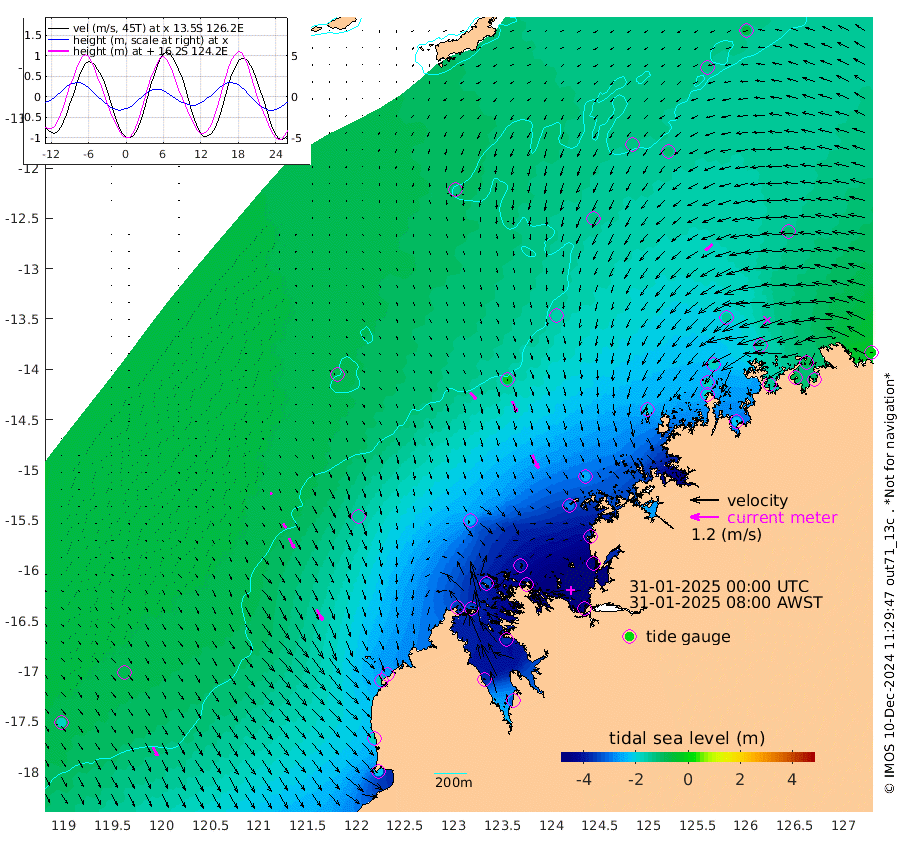 37cm/s 137T +10cm/s rms + 1cm/s 1T. NWSBRW 205m 41cm/s 151T +11cm/s rms + 6cm/s -110T. NWSROW 199m 63cm/s 156T +5cm/s rms + 2cm/s 65T. CAM050 58m 49cm/s 158T +12cm/s rms + 5cm/s 92T. CAM100 99m 11cm/s 155T +7cm/s rms + 1cm/s -85T. KIM400 396m 23cm/s 145T +9cm/s rms + 5cm/s -119T. KIM200 208m 47cm/s 151T +11cm/s rms + 5cm/s -147T. KIM100 99m 52cm/s 150T +8cm/s rms + 3cm/s -103T. KIM050 59m 42cm/s -131T +4cm/s rms + 2cm/s 23T. TIMORS88 91m -172cm Imperieuse Reef -82cm Mermaid Reef -221cm Broome -157cm Cape Baskerville -257cm Red Bluff -168cm Cape Boileau -78cm Scott Reef (WA) -131cm Ashmore Reef -345cm Karrakatta Bay -344cm Sunday Island -371cm Valentine Island -327cm Derby -361cm Port Usborne -326cm Bedford Islands -378cm Yampi Sound (Koolan Island) -376cm Macleay Island -237cm Adele Island -23cm Browse Island -488cm Shale Island -480cm Lizard Island -345cm Hall Point -300cm Degerando Island -251cm White Island -126cm Skua No. 4 Well -114cm Jabiru -198cm Maret Island -174cm Baudin Island -184cm Cape Voltaire (Krait Bay) -131cm Dillon Shoal -65cm Laminaria -222cm Port Warrender -150cm Troughton Island -178cm Cassini Island -135cm West Holothuria Reef Offshore -143cm Jar Island -143cm Lynher Bank -157cm Heywood Shoal -134cm Pee Shoal -112cm Van Cloon Shoal -84cm Carronade Island -79cm Guy Point -95cm Napier Broome Bay -13cm Lesueur Island