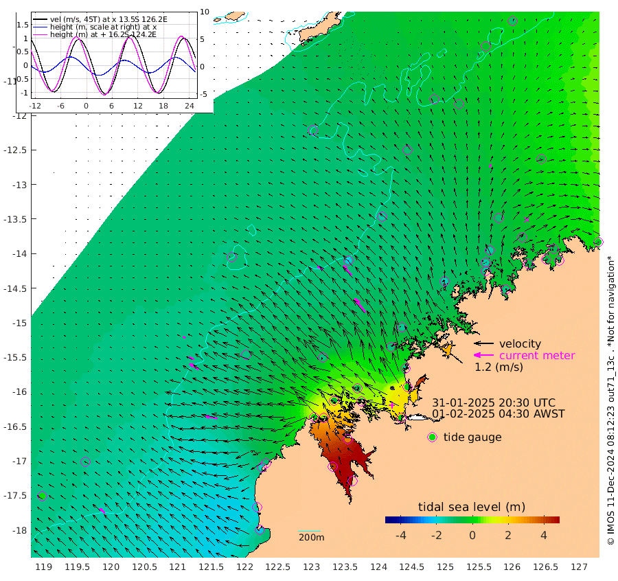 38cm/s -57T +10cm/s rms + 1cm/s 1T. NWSBRW 205m 42cm/s -49T +11cm/s rms + 6cm/s -110T. NWSROW 199m 108cm/s -38T +5cm/s rms + 2cm/s 65T. CAM050 58m 79cm/s -41T +12cm/s rms + 5cm/s 92T. CAM100 99m 18cm/s -67T +7cm/s rms + 1cm/s -85T. KIM400 396m 36cm/s -63T +9cm/s rms + 5cm/s -119T. KIM200 208m 64cm/s -56T +11cm/s rms + 5cm/s -147T. KIM100 99m 76cm/s -78T +8cm/s rms + 3cm/s -103T. KIM050 59m 22cm/s 28T +4cm/s rms + 2cm/s 23T. TIMORS88 91m 26cm Imperieuse Reef -126cm Mermaid Reef -220cm Broome -169cm Cape Baskerville -110cm Red Bluff -159cm Cape Boileau -117cm Scott Reef (WA) -92cm Ashmore Reef 29cm Karrakatta Bay 63cm Sunday Island 407cm Valentine Island 478cm Derby 324cm Port Usborne -54cm Bedford Islands -65cm Yampi Sound (Koolan Island) -102cm Macleay Island -124cm Adele Island -201cm Browse Island 1cm Shale Island -13cm Lizard Island -136cm Hall Point -124cm Degerando Island -148cm White Island -109cm Skua No. 4 Well -83cm Jabiru -177cm Maret Island -155cm Baudin Island -157cm Cape Voltaire (Krait Bay) -35cm Dillon Shoal -106cm Laminaria -130cm Port Warrender -87cm Troughton Island -153cm Cassini Island -115cm West Holothuria Reef Offshore -80cm Jar Island -127cm Lynher Bank -153cm Heywood Shoal -76cm Pee Shoal -46cm Van Cloon Shoal -81cm Carronade Island -85cm Guy Point -87cm Napier Broome Bay -23cm Lesueur Island