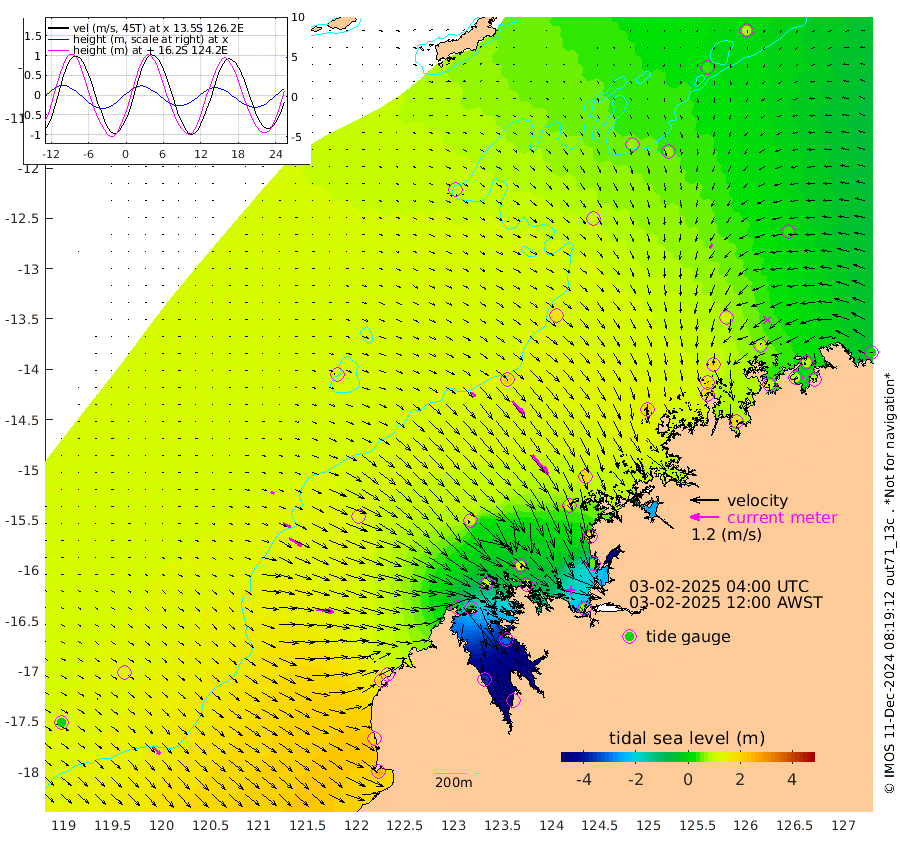 27cm/s 119T +10cm/s rms + 1cm/s 1T. NWSBRW 205m 41cm/s 134T +11cm/s rms + 6cm/s -110T. NWSROW 199m 105cm/s 141T +5cm/s rms + 2cm/s 65T. CAM050 58m 73cm/s 138T +12cm/s rms + 5cm/s 92T. CAM100 99m 16cm/s 112T +7cm/s rms + 1cm/s -85T. KIM400 396m 35cm/s 114T +9cm/s rms + 5cm/s -119T. KIM200 208m 63cm/s 120T +11cm/s rms + 5cm/s -147T. KIM100 99m 72cm/s 99T +8cm/s rms + 3cm/s -103T. KIM050 59m 19cm/s -141T +4cm/s rms + 2cm/s 23T. TIMORS88 91m -15cm Imperieuse Reef 128cm Mermaid Reef 255cm Broome 199cm Cape Baskerville 141cm Red Bluff 179cm Cape Boileau 115cm Scott Reef (WA) 91cm Ashmore Reef 4cm Karrakatta Bay -43cm Sunday Island -373cm Valentine Island -480cm Derby -310cm Port Usborne 94cm Bedford Islands 114cm Yampi Sound (Koolan Island) 137cm Macleay Island 141cm Adele Island 205cm Browse Island 63cm Shale Island 51cm Lizard Island 167cm Hall Point 166cm Degerando Island 188cm White Island 108cm Skua No. 4 Well 72cm Jabiru 197cm Maret Island 183cm Baudin Island 182cm Cape Voltaire (Krait Bay) 34cm Dillon Shoal 87cm Laminaria 173cm Port Warrender 105cm Troughton Island 172cm Cassini Island 125cm West Holothuria Reef Offshore 99cm Jar Island 137cm Lynher Bank 167cm Heywood Shoal 70cm Pee Shoal 43cm Van Cloon Shoal 88cm Carronade Island 96cm Guy Point 84cm Napier Broome Bay 25cm Lesueur Island