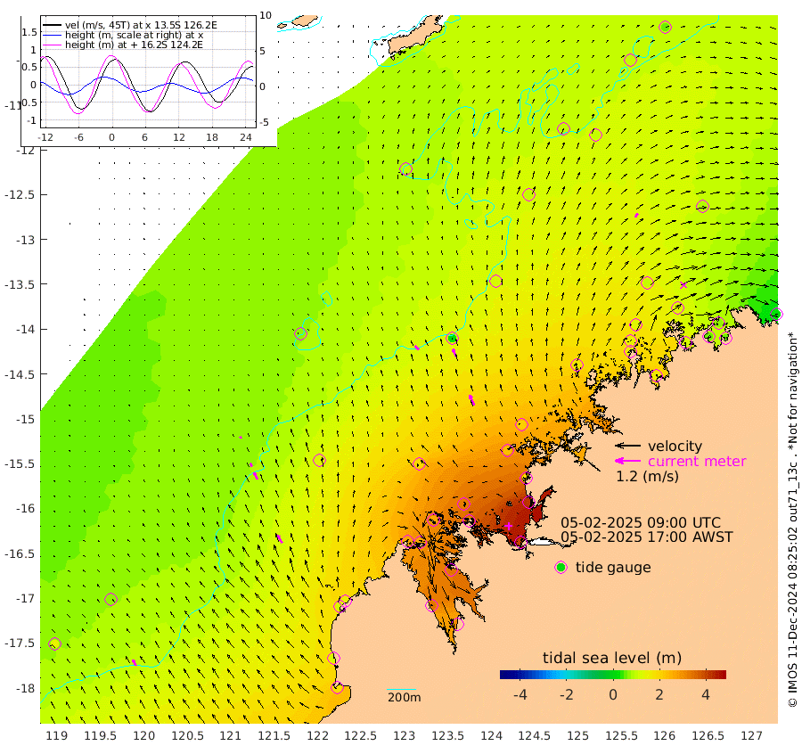 26cm/s -43T +10cm/s rms + 1cm/s 1T. NWSBRW 205m 33cm/s -29T +11cm/s rms + 6cm/s -110T. NWSROW 199m 53cm/s -26T +5cm/s rms + 2cm/s 65T. CAM050 58m 42cm/s -23T +12cm/s rms + 5cm/s 92T. CAM100 99m 8cm/s -22T +7cm/s rms + 1cm/s -85T. KIM400 396m 18cm/s -30T +9cm/s rms + 5cm/s -119T. KIM200 208m 38cm/s -25T +11cm/s rms + 5cm/s -147T. KIM100 99m 45cm/s -30T +8cm/s rms + 3cm/s -103T. KIM050 59m 23cm/s 33T +4cm/s rms + 2cm/s 23T. TIMORS88 91m 141cm Imperieuse Reef 67cm Mermaid Reef 169cm Broome 116cm Cape Baskerville 144cm Red Bluff 111cm Cape Boileau 65cm Scott Reef (WA) 101cm Ashmore Reef 269cm Karrakatta Bay 269cm Sunday Island 337cm Valentine Island 301cm Derby 331cm Port Usborne 267cm Bedford Islands 304cm Yampi Sound (Koolan Island) 316cm Macleay Island 183cm Adele Island 29cm Browse Island 396cm Shale Island 405cm Lizard Island 186cm Hall Point 229cm Degerando Island 199cm White Island 102cm Skua No. 4 Well 96cm Jabiru 153cm Maret Island 136cm Baudin Island 141cm Cape Voltaire (Krait Bay) 91cm Dillon Shoal 54cm Laminaria 164cm Port Warrender 129cm Troughton Island 132cm Cassini Island 99cm West Holothuria Reef Offshore 114cm Jar Island 121cm Lynher Bank 106cm Heywood Shoal 101cm Pee Shoal 77cm Van Cloon Shoal 61cm Carronade Island 59cm Guy Point 58cm Napier Broome Bay 26cm Lesueur Island
