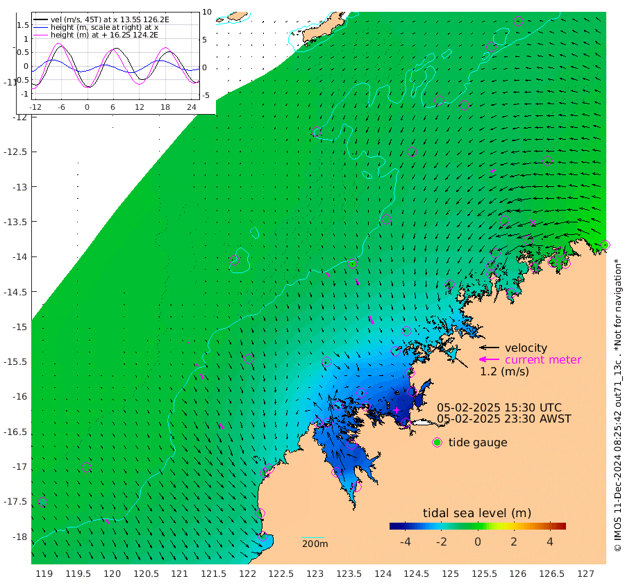 28cm/s 139T +10cm/s rms + 1cm/s 1T. NWSBRW 205m 29cm/s 150T +11cm/s rms + 6cm/s -110T. NWSROW 199m 52cm/s 155T +5cm/s rms + 2cm/s 65T. CAM050 58m 41cm/s 157T +12cm/s rms + 5cm/s 92T. CAM100 99m 7cm/s 158T +7cm/s rms + 1cm/s -85T. KIM400 396m 15cm/s 146T +9cm/s rms + 5cm/s -119T. KIM200 208m 32cm/s 152T +11cm/s rms + 5cm/s -147T. KIM100 99m 40cm/s 144T +8cm/s rms + 3cm/s -103T. KIM050 59m 27cm/s -123T +4cm/s rms + 2cm/s 23T. TIMORS88 91m -115cm Imperieuse Reef -49cm Mermaid Reef -120cm Broome -81cm Cape Baskerville -113cm Red Bluff -75cm Cape Boileau -49cm Scott Reef (WA) -74cm Ashmore Reef -229cm Karrakatta Bay -240cm Sunday Island -314cm Valentine Island -301cm Derby -310cm Port Usborne -222cm Bedford Islands -245cm Yampi Sound (Koolan Island) -259cm Macleay Island -143cm Adele Island 8cm Browse Island -328cm Shale Island -321cm Lizard Island -137cm Hall Point -173cm Degerando Island -143cm White Island -79cm Skua No. 4 Well -83cm Jabiru -102cm Maret Island -86cm Baudin Island -91cm Cape Voltaire (Krait Bay) -81cm Dillon Shoal -54cm Laminaria -100cm Port Warrender -73cm Troughton Island -82cm Cassini Island -59cm West Holothuria Reef Offshore -60cm Jar Island -89cm Lynher Bank -86cm Heywood Shoal -77cm Pee Shoal -41cm Van Cloon Shoal -13cm Carronade Island -18cm Guy Point -7cm Napier Broome Bay 31cm Lesueur Island