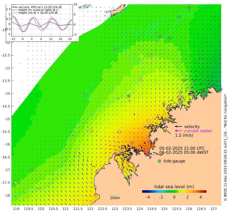 18cm/s -42T +10cm/s rms + 1cm/s 1T. NWSBRW 205m 23cm/s -28T +11cm/s rms + 6cm/s -110T. NWSROW 199m 33cm/s -30T +5cm/s rms + 2cm/s 65T. CAM050 58m 28cm/s -25T +12cm/s rms + 5cm/s 92T. CAM100 99m 5cm/s -10T +7cm/s rms + 1cm/s -85T. KIM400 396m 11cm/s -27T +9cm/s rms + 5cm/s -119T. KIM200 208m 24cm/s -28T +11cm/s rms + 5cm/s -147T. KIM100 99m 31cm/s -22T +8cm/s rms + 3cm/s -103T. KIM050 59m 14cm/s 45T +4cm/s rms + 2cm/s 23T. TIMORS88 91m 78cm Imperieuse Reef 35cm Mermaid Reef 141cm Broome 84cm Cape Baskerville 129cm Red Bluff 89cm Cape Boileau 33cm Scott Reef (WA) 43cm Ashmore Reef 203cm Karrakatta Bay 204cm Sunday Island 182cm Valentine Island 151cm Derby 202cm Port Usborne 206cm Bedford Islands 237cm Yampi Sound (Koolan Island) 248cm Macleay Island 132cm Adele Island 12cm Browse Island 311cm Shale Island 321cm Lizard Island 120cm Hall Point 174cm Degerando Island 152cm White Island 47cm Skua No. 4 Well 18cm Jabiru 96cm Maret Island 79cm Baudin Island 80cm Cape Voltaire (Krait Bay) 29cm Dillon Shoal 9cm Laminaria 85cm Port Warrender 19cm Troughton Island 59cm Cassini Island 29cm West Holothuria Reef Offshore 27cm Jar Island 80cm Lynher Bank 69cm Heywood Shoal 30cm Pee Shoal -5cm Van Cloon Shoal -28cm Carronade Island -28cm Guy Point -28cm Napier Broome Bay -108cm Lesueur Island