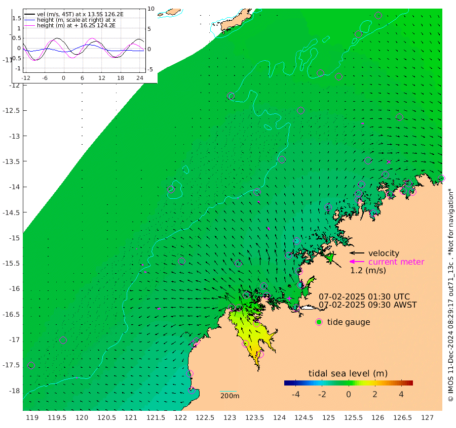 4cm/s -54T +10cm/s rms + 1cm/s 1T. NWSBRW 205m 8cm/s -71T +11cm/s rms + 6cm/s -110T. NWSROW 199m 25cm/s -32T +5cm/s rms + 2cm/s 65T. CAM050 58m 17cm/s -45T +12cm/s rms + 5cm/s 92T. CAM100 99m 4cm/s -87T +7cm/s rms + 1cm/s -85T. KIM400 396m 9cm/s -79T +9cm/s rms + 5cm/s -119T. KIM200 208m 15cm/s -78T +11cm/s rms + 5cm/s -147T. KIM100 99m 22cm/s -107T +8cm/s rms + 3cm/s -103T. KIM050 59m 19cm/s 90T +4cm/s rms + 2cm/s 23T. TIMORS88 91m -32cm Imperieuse Reef -65cm Mermaid Reef -153cm Broome -105cm Cape Baskerville -88cm Red Bluff -109cm Cape Boileau -56cm Scott Reef (WA) -56cm Ashmore Reef -59cm Karrakatta Bay -42cm Sunday Island 92cm Valentine Island 150cm Derby 63cm Port Usborne -92cm Bedford Islands -136cm Yampi Sound (Koolan Island) -115cm Macleay Island -92cm Adele Island -100cm Browse Island -139cm Shale Island -175cm Lizard Island -70cm Hall Point -134cm Degerando Island -152cm White Island -55cm Skua No. 4 Well -16cm Jabiru -121cm Maret Island -117cm Baudin Island -126cm Cape Voltaire (Krait Bay) -22cm Dillon Shoal -26cm Laminaria -145cm Port Warrender -90cm Troughton Island -106cm Cassini Island -85cm West Holothuria Reef Offshore -101cm Jar Island -92cm Lynher Bank -90cm Heywood Shoal -40cm Pee Shoal -52cm Van Cloon Shoal -88cm Carronade Island -86cm Guy Point -90cm Napier Broome Bay -68cm Lesueur Island