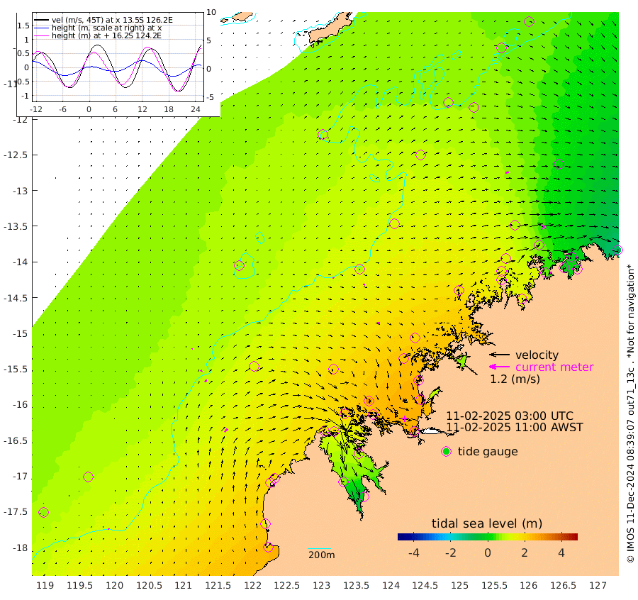 7cm/s 5T +10cm/s rms + 1cm/s 1T. NWSBRW 205m 9cm/s 13T +11cm/s rms + 6cm/s -110T. NWSROW 199m 15cm/s 115T +5cm/s rms + 2cm/s 65T. CAM050 58m 11cm/s 95T +12cm/s rms + 5cm/s 92T. CAM100 99m 5cm/s 65T +7cm/s rms + 1cm/s -85T. KIM400 396m 9cm/s 58T +9cm/s rms + 5cm/s -119T. KIM200 208m 14cm/s 58T +11cm/s rms + 5cm/s -147T. KIM100 99m 26cm/s 44T +8cm/s rms + 3cm/s -103T. KIM050 59m 20cm/s 74T +4cm/s rms + 2cm/s 23T. TIMORS88 91m 66cm Imperieuse Reef 81cm Mermaid Reef 218cm Broome 162cm Cape Baskerville 193cm Red Bluff 147cm Cape Boileau 78cm Scott Reef (WA) 85cm Ashmore Reef 192cm Karrakatta Bay 175cm Sunday Island 73cm Valentine Island -7cm Derby 86cm Port Usborne 240cm Bedford Islands 245cm Yampi Sound (Koolan Island) 299cm Macleay Island 194cm Adele Island 87cm Browse Island 286cm Shale Island 264cm Lizard Island 277cm Hall Point 221cm Degerando Island 190cm White Island 97cm Skua No. 4 Well 83cm Jabiru 172cm Maret Island 140cm Baudin Island 136cm Cape Voltaire (Krait Bay) 51cm Dillon Shoal 54cm Laminaria 141cm Port Warrender 64cm Troughton Island 132cm Cassini Island 81cm West Holothuria Reef Offshore 48cm Jar Island 121cm Lynher Bank 124cm Heywood Shoal 79cm Pee Shoal 18cm Van Cloon Shoal -3cm Carronade Island -2cm Guy Point -6cm Napier Broome Bay -104cm Lesueur Island