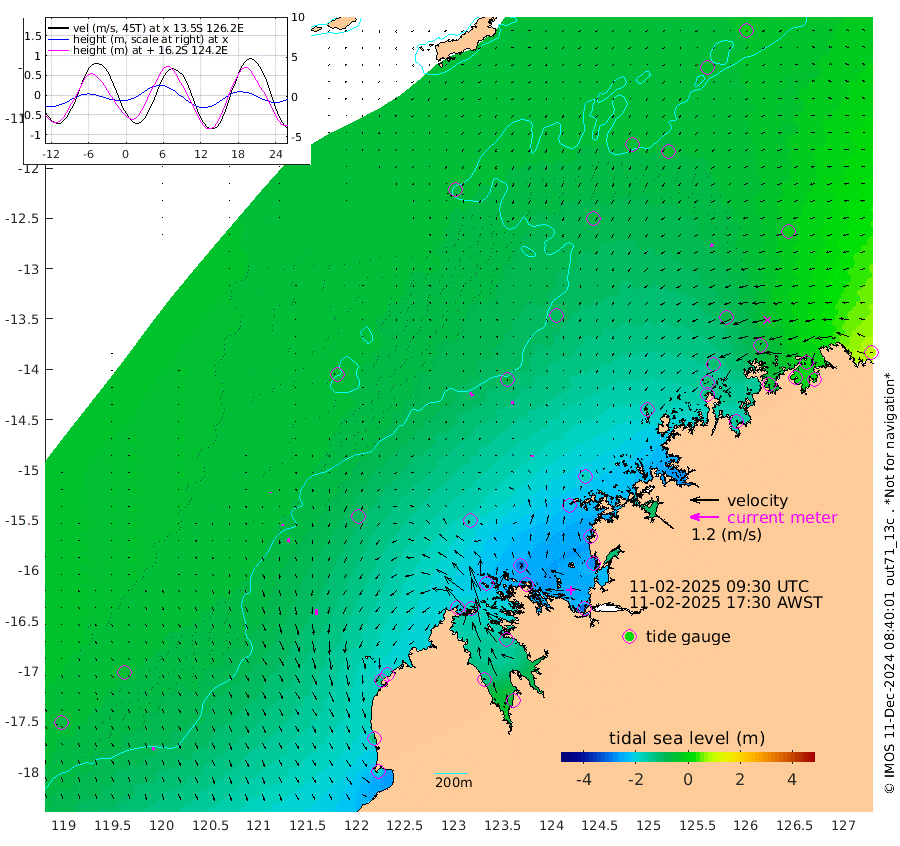 17cm/s 142T +10cm/s rms + 1cm/s 1T. NWSBRW 205m 14cm/s 161T +11cm/s rms + 6cm/s -110T. NWSROW 199m 9cm/s 169T +5cm/s rms + 2cm/s 65T. CAM050 58m 12cm/s 166T +12cm/s rms + 5cm/s 92T. CAM100 99m 4cm/s -177T +7cm/s rms + 1cm/s -85T. KIM400 396m 8cm/s -174T +9cm/s rms + 5cm/s -119T. KIM200 208m 17cm/s -177T +11cm/s rms + 5cm/s -147T. KIM100 99m 23cm/s -179T +8cm/s rms + 3cm/s -103T. KIM050 59m 13cm/s -145T +4cm/s rms + 2cm/s 23T. TIMORS88 91m -73cm Imperieuse Reef -50cm Mermaid Reef -194cm Broome -134cm Cape Baskerville -166cm Red Bluff -132cm Cape Boileau -52cm Scott Reef (WA) -63cm Ashmore Reef -200cm Karrakatta Bay -179cm Sunday Island -126cm Valentine Island -60cm Derby -138cm Port Usborne -231cm Bedford Islands -248cm Yampi Sound (Koolan Island) -297cm Macleay Island -174cm Adele Island -69cm Browse Island -304cm Shale Island -281cm Lizard Island -239cm Hall Point -217cm Degerando Island -178cm White Island -73cm Skua No. 4 Well -44cm Jabiru -151cm Maret Island -118cm Baudin Island -125cm Cape Voltaire (Krait Bay) -40cm Dillon Shoal -5cm Laminaria -140cm Port Warrender -60cm Troughton Island -116cm Cassini Island -63cm West Holothuria Reef Offshore -48cm Jar Island -97cm Lynher Bank -98cm Heywood Shoal -57cm Pee Shoal -10cm Van Cloon Shoal 4cm Carronade Island 6cm Guy Point 7cm Napier Broome Bay 101cm Lesueur Island