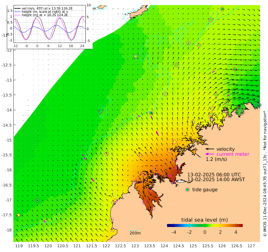 32cm/s -50T +10cm/s rms + 1cm/s 1T. NWSBRW 205m 40cm/s -35T +11cm/s rms + 6cm/s -110T. NWSROW 199m 68cm/s -26T +5cm/s rms + 2cm/s 65T. CAM050 58m 52cm/s -25T +12cm/s rms + 5cm/s 92T. CAM100 99m 11cm/s -37T +7cm/s rms + 1cm/s -85T. KIM400 396m 24cm/s -38T +9cm/s rms + 5cm/s -119T. KIM200 208m 47cm/s -32T +11cm/s rms + 5cm/s -147T. KIM100 99m 50cm/s -39T +8cm/s rms + 3cm/s -103T. KIM050 59m 38cm/s 54T +4cm/s rms + 2cm/s 23T. TIMORS88 91m 123cm Imperieuse Reef 29cm Mermaid Reef 126cm Broome 85cm Cape Baskerville 161cm Red Bluff 79cm Cape Boileau 27cm Scott Reef (WA) 61cm Ashmore Reef 257cm Karrakatta Bay 269cm Sunday Island 353cm Valentine Island 320cm Derby 333cm Port Usborne 267cm Bedford Islands 275cm Yampi Sound (Koolan Island) 264cm Macleay Island 149cm Adele Island -32cm Browse Island 371cm Shale Island 361cm Lizard Island 180cm Hall Point 206cm Degerando Island 149cm White Island 57cm Skua No. 4 Well 51cm Jabiru 105cm Maret Island 82cm Baudin Island 90cm Cape Voltaire (Krait Bay) 54cm Dillon Shoal 15cm Laminaria 118cm Port Warrender 60cm Troughton Island 82cm Cassini Island 46cm West Holothuria Reef Offshore 51cm Jar Island 84cm Lynher Bank 67cm Heywood Shoal 64cm Pee Shoal 33cm Van Cloon Shoal -3cm Carronade Island -10cm Guy Point -5cm Napier Broome Bay -55cm Lesueur Island