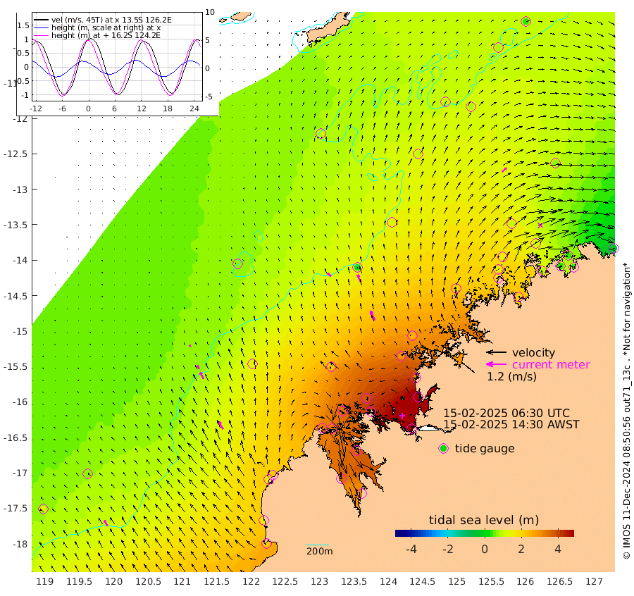 30cm/s -46T +10cm/s rms + 1cm/s 1T. NWSBRW 205m 40cm/s -30T +11cm/s rms + 6cm/s -110T. NWSROW 199m 62cm/s -25T +5cm/s rms + 2cm/s 65T. CAM050 58m 49cm/s -23T +12cm/s rms + 5cm/s 92T. CAM100 99m 10cm/s -26T +7cm/s rms + 1cm/s -85T. KIM400 396m 22cm/s -30T +9cm/s rms + 5cm/s -119T. KIM200 208m 45cm/s -26T +11cm/s rms + 5cm/s -147T. KIM100 99m 52cm/s -28T +8cm/s rms + 3cm/s -103T. KIM050 59m 35cm/s 48T +4cm/s rms + 2cm/s 23T. TIMORS88 91m 149cm Imperieuse Reef 68cm Mermaid Reef 216cm Broome 145cm Cape Baskerville 218cm Red Bluff 142cm Cape Boileau 63cm Scott Reef (WA) 99cm Ashmore Reef 315cm Karrakatta Bay 327cm Sunday Island 351cm Valentine Island 300cm Derby 350cm Port Usborne 335cm Bedford Islands 374cm Yampi Sound (Koolan Island) 372cm Macleay Island 221cm Adele Island 19cm Browse Island 479cm Shale Island 478cm Lizard Island 288cm Hall Point 292cm Degerando Island 246cm White Island 94cm Skua No. 4 Well 84cm Jabiru 177cm Maret Island 149cm Baudin Island 161cm Cape Voltaire (Krait Bay) 85cm Dillon Shoal 39cm Laminaria 200cm Port Warrender 108cm Troughton Island 141cm Cassini Island 98cm West Holothuria Reef Offshore 103cm Jar Island 140cm Lynher Bank 124cm Heywood Shoal 94cm Pee Shoal 61cm Van Cloon Shoal 37cm Carronade Island 33cm Guy Point 34cm Napier Broome Bay -40cm Lesueur Island