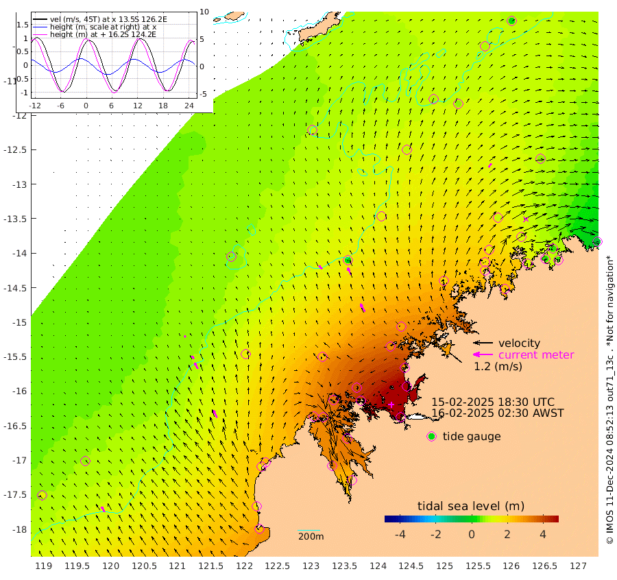 29cm/s -45T +10cm/s rms + 1cm/s 1T. NWSBRW 205m 39cm/s -30T +11cm/s rms + 6cm/s -110T. NWSROW 199m 57cm/s -29T +5cm/s rms + 2cm/s 65T. CAM050 58m 47cm/s -26T +12cm/s rms + 5cm/s 92T. CAM100 99m 10cm/s -27T +7cm/s rms + 1cm/s -85T. KIM400 396m 22cm/s -32T +9cm/s rms + 5cm/s -119T. KIM200 208m 42cm/s -29T +11cm/s rms + 5cm/s -147T. KIM100 99m 52cm/s -25T +8cm/s rms + 3cm/s -103T. KIM050 59m 28cm/s 37T +4cm/s rms + 2cm/s 23T. TIMORS88 91m 147cm Imperieuse Reef 68cm Mermaid Reef 234cm Broome 165cm Cape Baskerville 250cm Red Bluff 174cm Cape Boileau 62cm Scott Reef (WA) 96cm Ashmore Reef 337cm Karrakatta Bay 337cm Sunday Island 331cm Valentine Island 262cm Derby 320cm Port Usborne 337cm Bedford Islands 386cm Yampi Sound (Koolan Island) 385cm Macleay Island 227cm Adele Island 28cm Browse Island 492cm Shale Island 474cm Lizard Island 294cm Hall Point 303cm Degerando Island 264cm White Island 93cm Skua No. 4 Well 60cm Jabiru 185cm Maret Island 172cm Baudin Island 168cm Cape Voltaire (Krait Bay) 88cm Dillon Shoal 22cm Laminaria 215cm Port Warrender 108cm Troughton Island 147cm Cassini Island 105cm West Holothuria Reef Offshore 112cm Jar Island 138cm Lynher Bank 138cm Heywood Shoal 86cm Pee Shoal 63cm Van Cloon Shoal 42cm Carronade Island 43cm Guy Point 45cm Napier Broome Bay -46cm Lesueur Island