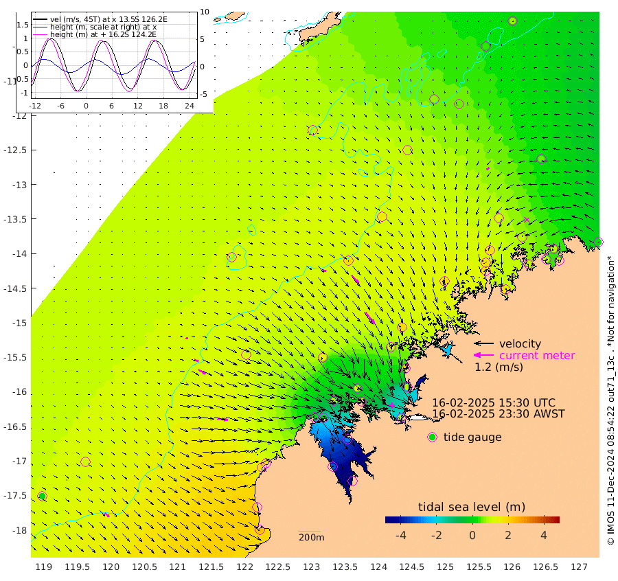 22cm/s 121T +10cm/s rms + 1cm/s 1T. NWSBRW 205m 33cm/s 131T +11cm/s rms + 6cm/s -110T. NWSROW 199m 91cm/s 142T +5cm/s rms + 2cm/s 65T. CAM050 58m 64cm/s 139T +12cm/s rms + 5cm/s 92T. CAM100 99m 14cm/s 111T +7cm/s rms + 1cm/s -85T. KIM400 396m 28cm/s 115T +9cm/s rms + 5cm/s -119T. KIM200 208m 50cm/s 121T +11cm/s rms + 5cm/s -147T. KIM100 99m 64cm/s 98T +8cm/s rms + 3cm/s -103T. KIM050 59m 20cm/s -127T +4cm/s rms + 2cm/s 23T. TIMORS88 91m -7cm Imperieuse Reef 113cm Mermaid Reef 238cm Broome 184cm Cape Baskerville 174cm Red Bluff 185cm Cape Boileau 100cm Scott Reef (WA) 90cm Ashmore Reef 29cm Karrakatta Bay -29cm Sunday Island -330cm Valentine Island -437cm Derby -286cm Port Usborne 75cm Bedford Islands 115cm Yampi Sound (Koolan Island) 141cm Macleay Island 140cm Adele Island 190cm Browse Island 76cm Shale Island 86cm Lizard Island 198cm Hall Point 158cm Degerando Island 182cm White Island 103cm Skua No. 4 Well 51cm Jabiru 190cm Maret Island 176cm Baudin Island 174cm Cape Voltaire (Krait Bay) 39cm Dillon Shoal 70cm Laminaria 171cm Port Warrender 100cm Troughton Island 170cm Cassini Island 127cm West Holothuria Reef Offshore 104cm Jar Island 118cm Lynher Bank 160cm Heywood Shoal 72cm Pee Shoal 57cm Van Cloon Shoal 92cm Carronade Island 93cm Guy Point 103cm Napier Broome Bay 17cm Lesueur Island