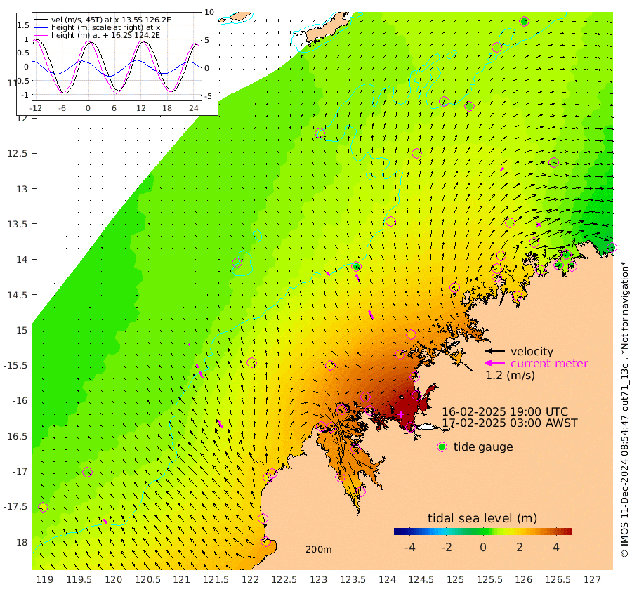 29cm/s -45T +10cm/s rms + 1cm/s 1T. NWSBRW 205m 38cm/s -31T +11cm/s rms + 6cm/s -110T. NWSROW 199m 58cm/s -30T +5cm/s rms + 2cm/s 65T. CAM050 58m 47cm/s -27T +12cm/s rms + 5cm/s 92T. CAM100 99m 10cm/s -28T +7cm/s rms + 1cm/s -85T. KIM400 396m 22cm/s -34T +9cm/s rms + 5cm/s -119T. KIM200 208m 41cm/s -31T +11cm/s rms + 5cm/s -147T. KIM100 99m 51cm/s -28T +8cm/s rms + 3cm/s -103T. KIM050 59m 26cm/s 37T +4cm/s rms + 2cm/s 23T. TIMORS88 91m 133cm Imperieuse Reef 55cm Mermaid Reef 205cm Broome 142cm Cape Baskerville 228cm Red Bluff 148cm Cape Boileau 49cm Scott Reef (WA) 80cm Ashmore Reef 312cm Karrakatta Bay 312cm Sunday Island 327cm Valentine Island 260cm Derby 309cm Port Usborne 306cm Bedford Islands 356cm Yampi Sound (Koolan Island) 351cm Macleay Island 201cm Adele Island 13cm Browse Island 460cm Shale Island 450cm Lizard Island 276cm Hall Point 271cm Degerando Island 239cm White Island 75cm Skua No. 4 Well 46cm Jabiru 158cm Maret Island 148cm Baudin Island 142cm Cape Voltaire (Krait Bay) 72cm Dillon Shoal 14cm Laminaria 187cm Port Warrender 85cm Troughton Island 121cm Cassini Island 85cm West Holothuria Reef Offshore 93cm Jar Island 119cm Lynher Bank 115cm Heywood Shoal 69cm Pee Shoal 47cm Van Cloon Shoal 25cm Carronade Island 25cm Guy Point 25cm Napier Broome Bay -60cm Lesueur Island