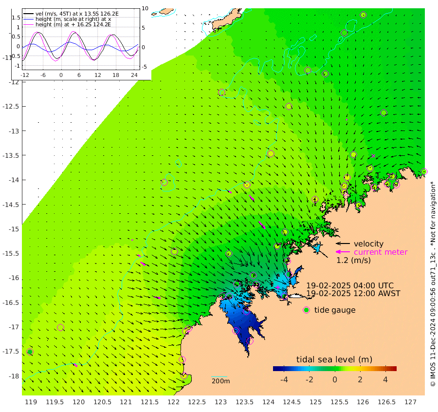 26cm/s 120T +10cm/s rms + 1cm/s 1T. NWSBRW 205m 34cm/s 137T +11cm/s rms + 6cm/s -110T. NWSROW 199m 83cm/s 141T +5cm/s rms + 2cm/s 65T. CAM050 58m 60cm/s 138T +12cm/s rms + 5cm/s 92T. CAM100 99m 11cm/s 116T +7cm/s rms + 1cm/s -85T. KIM400 396m 26cm/s 117T +9cm/s rms + 5cm/s -119T. KIM200 208m 49cm/s 124T +11cm/s rms + 5cm/s -147T. KIM100 99m 57cm/s 104T +8cm/s rms + 3cm/s -103T. KIM050 59m 13cm/s -165T +4cm/s rms + 2cm/s 23T. TIMORS88 91m -19cm Imperieuse Reef 87cm Mermaid Reef 154cm Broome 131cm Cape Baskerville 92cm Red Bluff 116cm Cape Boileau 76cm Scott Reef (WA) 66cm Ashmore Reef -25cm Karrakatta Bay -68cm Sunday Island -319cm Valentine Island -380cm Derby -270cm Port Usborne 27cm Bedford Islands 31cm Yampi Sound (Koolan Island) 33cm Macleay Island 73cm Adele Island 137cm Browse Island -17cm Shale Island -55cm Lizard Island 58cm Hall Point 85cm Degerando Island 96cm White Island 78cm Skua No. 4 Well 50cm Jabiru 123cm Maret Island 124cm Baudin Island 118cm Cape Voltaire (Krait Bay) 34cm Dillon Shoal 71cm Laminaria 101cm Port Warrender 79cm Troughton Island 124cm Cassini Island 91cm West Holothuria Reef Offshore 75cm Jar Island 78cm Lynher Bank 117cm Heywood Shoal 54cm Pee Shoal 45cm Van Cloon Shoal 76cm Carronade Island 80cm Guy Point 76cm Napier Broome Bay 54cm Lesueur Island