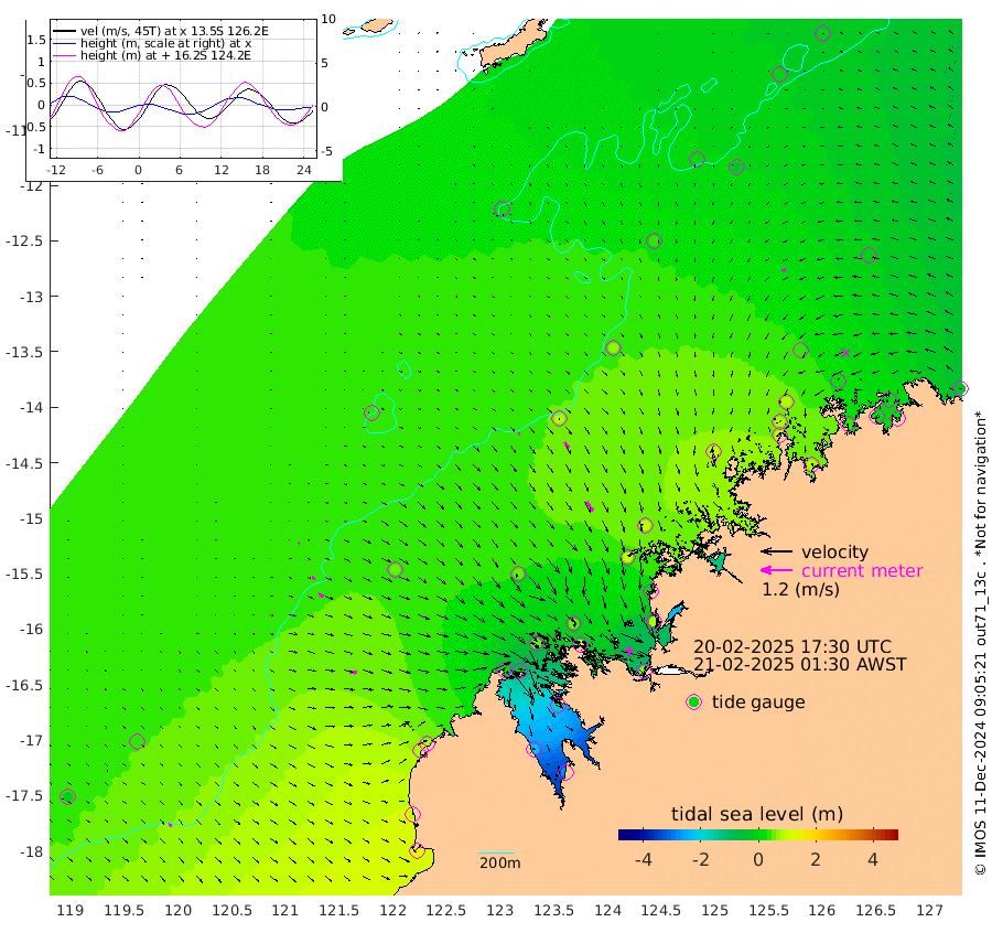 7cm/s 120T +10cm/s rms + 1cm/s 1T. NWSBRW 205m 14cm/s 125T +11cm/s rms + 6cm/s -110T. NWSROW 199m 42cm/s 148T +5cm/s rms + 2cm/s 65T. CAM050 58m 28cm/s 145T +12cm/s rms + 5cm/s 92T. CAM100 99m 5cm/s 110T +7cm/s rms + 1cm/s -85T. KIM400 396m 12cm/s 112T +9cm/s rms + 5cm/s -119T. KIM200 208m 22cm/s 120T +11cm/s rms + 5cm/s -147T. KIM100 99m 29cm/s 93T +8cm/s rms + 3cm/s -103T. KIM050 59m 15cm/s -115T +4cm/s rms + 2cm/s 23T. TIMORS88 91m -6cm Imperieuse Reef 42cm Mermaid Reef 137cm Broome 87cm Cape Baskerville 89cm Red Bluff 94cm Cape Boileau 35cm Scott Reef (WA) 27cm Ashmore Reef 15cm Karrakatta Bay -20cm Sunday Island -225cm Valentine Island -272cm Derby -166cm Port Usborne 52cm Bedford Islands 79cm Yampi Sound (Koolan Island) 60cm Macleay Island 59cm Adele Island 90cm Browse Island 72cm Shale Island 82cm Lizard Island 13cm Hall Point 101cm Degerando Island 100cm White Island 32cm Skua No. 4 Well -30cm Jabiru 93cm Maret Island 77cm Baudin Island 91cm Cape Voltaire (Krait Bay) -11cm Dillon Shoal -1cm Laminaria 82cm Port Warrender 24cm Troughton Island 77cm Cassini Island 38cm West Holothuria Reef Offshore 40cm Jar Island 56cm Lynher Bank 73cm Heywood Shoal 7cm Pee Shoal 0cm Van Cloon Shoal 24cm Carronade Island 18cm Guy Point 29cm Napier Broome Bay -32cm Lesueur Island