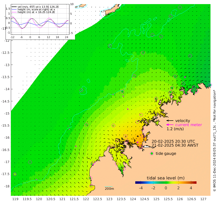 14cm/s -45T +10cm/s rms + 1cm/s 1T. NWSBRW 205m 17cm/s -29T +11cm/s rms + 6cm/s -110T. NWSROW 199m 26cm/s -38T +5cm/s rms + 2cm/s 65T. CAM050 58m 21cm/s -30T +12cm/s rms + 5cm/s 92T. CAM100 99m 4cm/s -19T +7cm/s rms + 1cm/s -85T. KIM400 396m 8cm/s -32T +9cm/s rms + 5cm/s -119T. KIM200 208m 18cm/s -33T +11cm/s rms + 5cm/s -147T. KIM100 99m 23cm/s -31T +8cm/s rms + 3cm/s -103T. KIM050 59m 8cm/s 39T +4cm/s rms + 2cm/s 23T. TIMORS88 91m 46cm Imperieuse Reef 12cm Mermaid Reef 87cm Broome 43cm Cape Baskerville 95cm Red Bluff 43cm Cape Boileau 6cm Scott Reef (WA) 18cm Ashmore Reef 136cm Karrakatta Bay 125cm Sunday Island 128cm Valentine Island 101cm Derby 134cm Port Usborne 119cm Bedford Islands 163cm Yampi Sound (Koolan Island) 157cm Macleay Island 77cm Adele Island -6cm Browse Island 225cm Shale Island 239cm Lizard Island 126cm Hall Point 108cm Degerando Island 104cm White Island 15cm Skua No. 4 Well -7cm Jabiru 53cm Maret Island 43cm Baudin Island 43cm Cape Voltaire (Krait Bay) 4cm Dillon Shoal -10cm Laminaria 48cm Port Warrender -4cm Troughton Island 26cm Cassini Island 8cm West Holothuria Reef Offshore 11cm Jar Island 38cm Lynher Bank 33cm Heywood Shoal 2cm Pee Shoal -19cm Van Cloon Shoal -32cm Carronade Island -37cm Guy Point -36cm Napier Broome Bay -97cm Lesueur Island