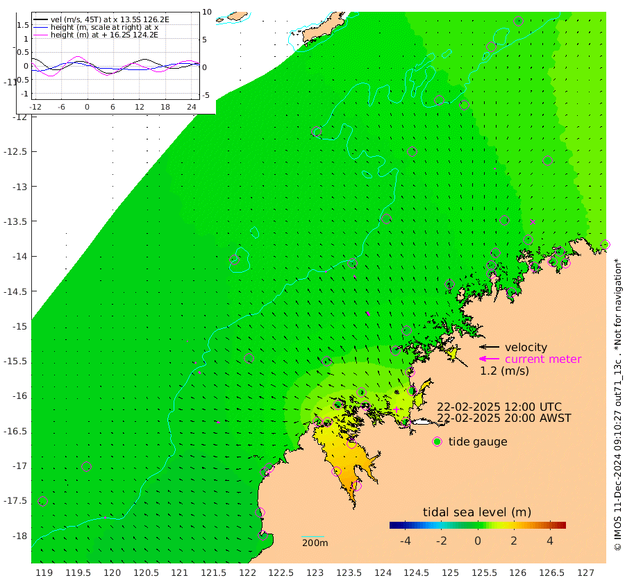 9cm/s -50T +10cm/s rms + 1cm/s 1T. NWSBRW 205m 10cm/s -43T +11cm/s rms + 6cm/s -110T. NWSROW 199m 26cm/s -35T +5cm/s rms + 2cm/s 65T. CAM050 58m 18cm/s -36T +12cm/s rms + 5cm/s 92T. CAM100 99m 3cm/s -60T +7cm/s rms + 1cm/s -85T. KIM400 396m 8cm/s -62T +9cm/s rms + 5cm/s -119T. KIM200 208m 16cm/s -49T +11cm/s rms + 5cm/s -147T. KIM100 99m 18cm/s -75T +8cm/s rms + 3cm/s -103T. KIM050 59m 8cm/s -16T +4cm/s rms + 2cm/s 23T. TIMORS88 91m 24cm Imperieuse Reef -13cm Mermaid Reef -47cm Broome -27cm Cape Baskerville -27cm Red Bluff -23cm Cape Boileau -7cm Scott Reef (WA) 8cm Ashmore Reef 35cm Karrakatta Bay 45cm Sunday Island 172cm Valentine Island 195cm Derby 136cm Port Usborne -5cm Bedford Islands -2cm Yampi Sound (Koolan Island) 37cm Macleay Island 6cm Adele Island -21cm Browse Island 12cm Shale Island 3cm Lizard Island 86cm Hall Point -22cm Degerando Island -18cm White Island 5cm Skua No. 4 Well 44cm Jabiru -16cm Maret Island -6cm Baudin Island -20cm Cape Voltaire (Krait Bay) 31cm Dillon Shoal 3cm Laminaria -6cm Port Warrender 28cm Troughton Island -6cm Cassini Island 12cm West Holothuria Reef Offshore 14cm Jar Island -16cm Lynher Bank -25cm Heywood Shoal 20cm Pee Shoal 29cm Van Cloon Shoal 18cm Carronade Island 19cm Guy Point 21cm Napier Broome Bay 47cm Lesueur Island
