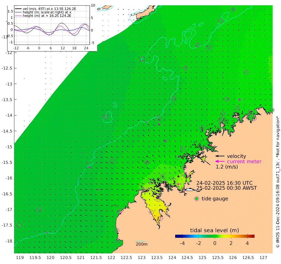 14cm/s -63T +10cm/s rms + 1cm/s 1T. NWSBRW 205m 16cm/s -46T +11cm/s rms + 6cm/s -110T. NWSROW 199m 33cm/s -41T +5cm/s rms + 2cm/s 65T. CAM050 58m 26cm/s -43T +12cm/s rms + 5cm/s 92T. CAM100 99m 7cm/s -64T +7cm/s rms + 1cm/s -85T. KIM400 396m 14cm/s -56T +9cm/s rms + 5cm/s -119T. KIM200 208m 23cm/s -49T +11cm/s rms + 5cm/s -147T. KIM100 99m 24cm/s -63T +8cm/s rms + 3cm/s -103T. KIM050 59m 10cm/s -18T +4cm/s rms + 2cm/s 23T. TIMORS88 91m 18cm Imperieuse Reef -34cm Mermaid Reef -19cm Broome -11cm Cape Baskerville 22cm Red Bluff -2cm Cape Boileau -31cm Scott Reef (WA) -19cm Ashmore Reef 44cm Karrakatta Bay 50cm Sunday Island 115cm Valentine Island 113cm Derby 86cm Port Usborne 33cm Bedford Islands 30cm Yampi Sound (Koolan Island) 17cm Macleay Island -2cm Adele Island -37cm Browse Island 50cm Shale Island 18cm Lizard Island 15cm Hall Point 20cm Degerando Island 1cm White Island -28cm Skua No. 4 Well -40cm Jabiru -13cm Maret Island -4cm Baudin Island -10cm Cape Voltaire (Krait Bay) -6cm Dillon Shoal -55cm Laminaria 22cm Port Warrender 1cm Troughton Island -9cm Cassini Island -9cm West Holothuria Reef Offshore 4cm Jar Island -21cm Lynher Bank -26cm Heywood Shoal -17cm Pee Shoal 2cm Van Cloon Shoal 0cm Carronade Island -4cm Guy Point 0cm Napier Broome Bay 8cm Lesueur Island