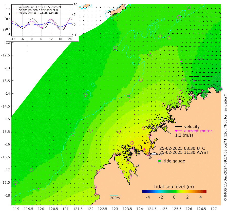 5cm/s -34T +10cm/s rms + 1cm/s 1T. NWSBRW 205m 11cm/s -26T +11cm/s rms + 6cm/s -110T. NWSROW 199m 12cm/s 4T +5cm/s rms + 2cm/s 65T. CAM050 58m 10cm/s 7T +12cm/s rms + 5cm/s 92T. CAM100 99m 3cm/s -5T +7cm/s rms + 1cm/s -85T. KIM400 396m 6cm/s -14T +9cm/s rms + 5cm/s -119T. KIM200 208m 11cm/s -12T +11cm/s rms + 5cm/s -147T. KIM100 99m 14cm/s 2T +8cm/s rms + 3cm/s -103T. KIM050 59m 26cm/s 75T +4cm/s rms + 2cm/s 23T. TIMORS88 91m 44cm Imperieuse Reef 32cm Mermaid Reef 94cm Broome 70cm Cape Baskerville 125cm Red Bluff 65cm Cape Boileau 30cm Scott Reef (WA) 44cm Ashmore Reef 118cm Karrakatta Bay 123cm Sunday Island 99cm Valentine Island 76cm Derby 95cm Port Usborne 130cm Bedford Islands 137cm Yampi Sound (Koolan Island) 156cm Macleay Island 104cm Adele Island 10cm Browse Island 166cm Shale Island 137cm Lizard Island 193cm Hall Point 116cm Degerando Island 92cm White Island 43cm Skua No. 4 Well 45cm Jabiru 76cm Maret Island 60cm Baudin Island 60cm Cape Voltaire (Krait Bay) 43cm Dillon Shoal 27cm Laminaria 73cm Port Warrender 27cm Troughton Island 63cm Cassini Island 42cm West Holothuria Reef Offshore 21cm Jar Island 52cm Lynher Bank 62cm Heywood Shoal 45cm Pee Shoal 17cm Van Cloon Shoal -4cm Carronade Island -5cm Guy Point -4cm Napier Broome Bay -62cm Lesueur Island