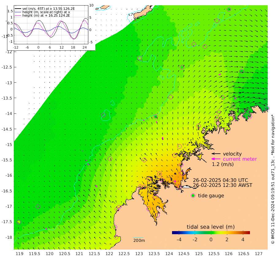 15cm/s -48T +10cm/s rms + 1cm/s 1T. NWSBRW 205m 23cm/s -33T +11cm/s rms + 6cm/s -110T. NWSROW 199m 35cm/s -21T +5cm/s rms + 2cm/s 65T. CAM050 58m 27cm/s -19T +12cm/s rms + 5cm/s 92T. CAM100 99m 6cm/s -31T +7cm/s rms + 1cm/s -85T. KIM400 396m 14cm/s -34T +9cm/s rms + 5cm/s -119T. KIM200 208m 26cm/s -29T +11cm/s rms + 5cm/s -147T. KIM100 99m 28cm/s -28T +8cm/s rms + 3cm/s -103T. KIM050 59m 32cm/s 66T +4cm/s rms + 2cm/s 23T. TIMORS88 91m 75cm Imperieuse Reef 28cm Mermaid Reef 107cm Broome 75cm Cape Baskerville 152cm Red Bluff 72cm Cape Boileau 25cm Scott Reef (WA) 51cm Ashmore Reef 177cm Karrakatta Bay 185cm Sunday Island 191cm Valentine Island 171cm Derby 184cm Port Usborne 179cm Bedford Islands 196cm Yampi Sound (Koolan Island) 195cm Macleay Island 122cm Adele Island -11cm Browse Island 251cm Shale Island 219cm Lizard Island 212cm Hall Point 154cm Degerando Island 119cm White Island 44cm Skua No. 4 Well 46cm Jabiru 86cm Maret Island 73cm Baudin Island 73cm Cape Voltaire (Krait Bay) 52cm Dillon Shoal 19cm Laminaria 95cm Port Warrender 39cm Troughton Island 72cm Cassini Island 48cm West Holothuria Reef Offshore 38cm Jar Island 61cm Lynher Bank 65cm Heywood Shoal 50cm Pee Shoal 28cm Van Cloon Shoal 2cm Carronade Island -2cm Guy Point 2cm Napier Broome Bay -54cm Lesueur Island