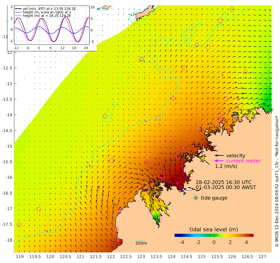 22cm/s -31T +10cm/s rms + 1cm/s 1T. NWSBRW 205m 27cm/s -16T +11cm/s rms + 6cm/s -110T. NWSROW 199m 19cm/s -14T +5cm/s rms + 2cm/s 65T. CAM050 58m 21cm/s -4T +12cm/s rms + 5cm/s 92T. CAM100 99m 8cm/s 4T +7cm/s rms + 1cm/s -85T. KIM400 396m 14cm/s -1T +9cm/s rms + 5cm/s -119T. KIM200 208m 27cm/s -2T +11cm/s rms + 5cm/s -147T. KIM100 99m 46cm/s 7T +8cm/s rms + 3cm/s -103T. KIM050 59m 24cm/s 40T +4cm/s rms + 2cm/s 23T. TIMORS88 91m 169cm Imperieuse Reef 132cm Mermaid Reef 358cm Broome 261cm Cape Baskerville 340cm Red Bluff 270cm Cape Boileau 125cm Scott Reef (WA) 167cm Ashmore Reef 379cm Karrakatta Bay 342cm Sunday Island 223cm Valentine Island 115cm Derby 238cm Port Usborne 394cm Bedford Islands 459cm Yampi Sound (Koolan Island) 490cm Macleay Island 319cm Adele Island 125cm Browse Island 556cm Shale Island 532cm Lizard Island 399cm Hall Point 396cm Degerando Island 351cm White Island 176cm Skua No. 4 Well 121cm Jabiru 299cm Maret Island 264cm Baudin Island 272cm Cape Voltaire (Krait Bay) 141cm Dillon Shoal 79cm Laminaria 305cm Port Warrender 188cm Troughton Island 261cm Cassini Island 184cm West Holothuria Reef Offshore 178cm Jar Island 202cm Lynher Bank 237cm Heywood Shoal 158cm Pee Shoal 113cm Van Cloon Shoal 100cm Carronade Island 100cm Guy Point 109cm Napier Broome Bay -28cm Lesueur Island